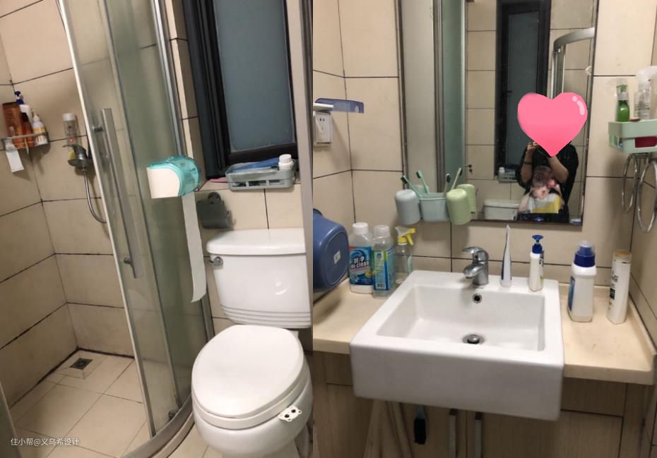 一层卫生间,改造前的卫生间收纳不够,干湿区在一起,使用起来也不方便。