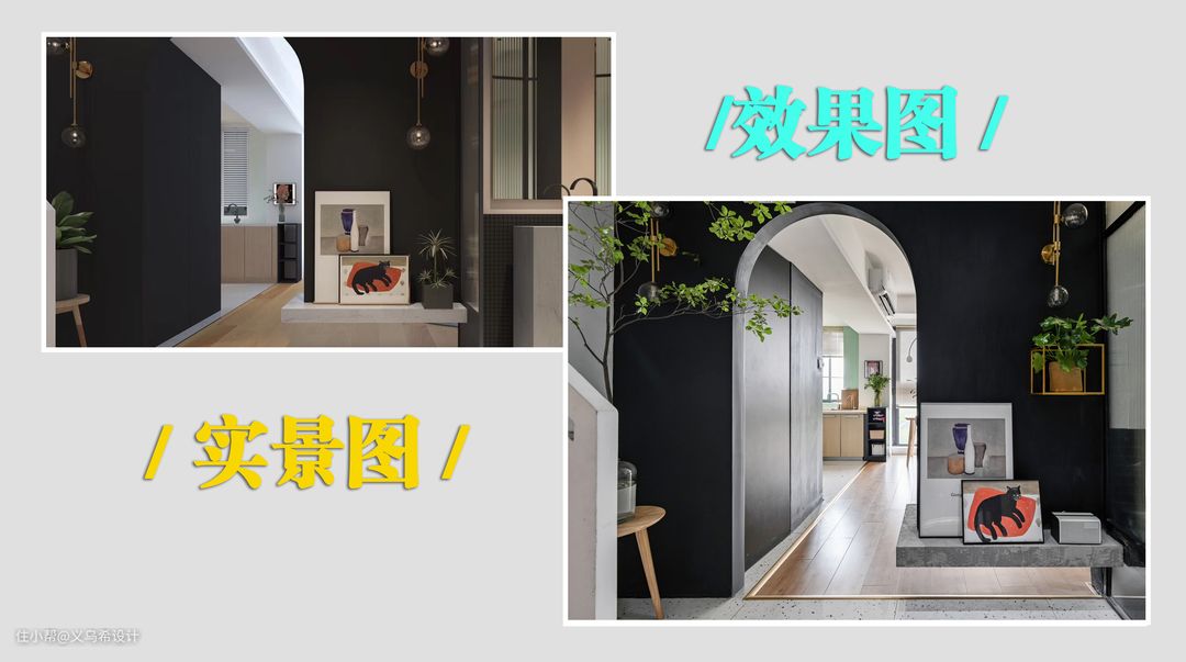 墙面深色乳胶漆一般会建议用进口乳胶漆,颜色正而且还可擦洗。 但是餐厅厨房门厅这一块的黑色艺术漆算出来费用在4000以上,再三考虑后,决定用立邦黑色乳胶漆,为了方便打理,表面再刷上罩光油,最后这块做好工资+材料一共1000左右大洋,过程折腾了好久,光是上罩光油都好几次样,不过最终上墙后还是挺满意的。