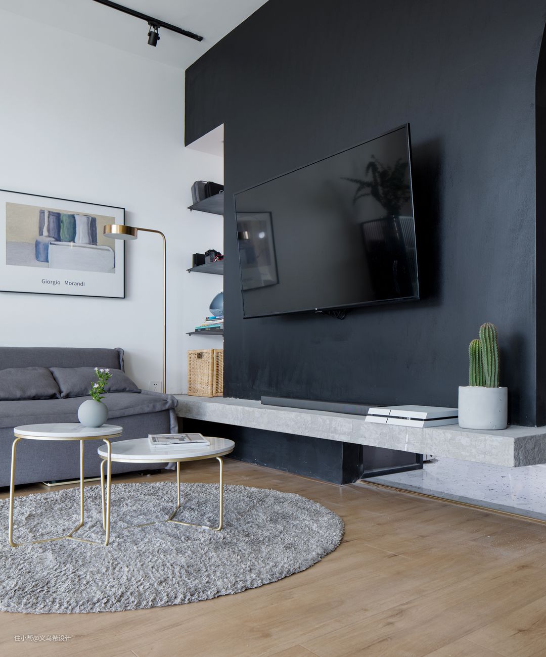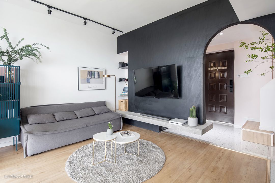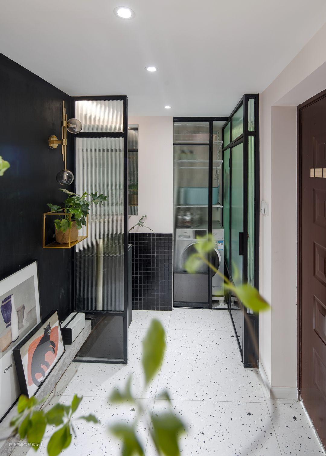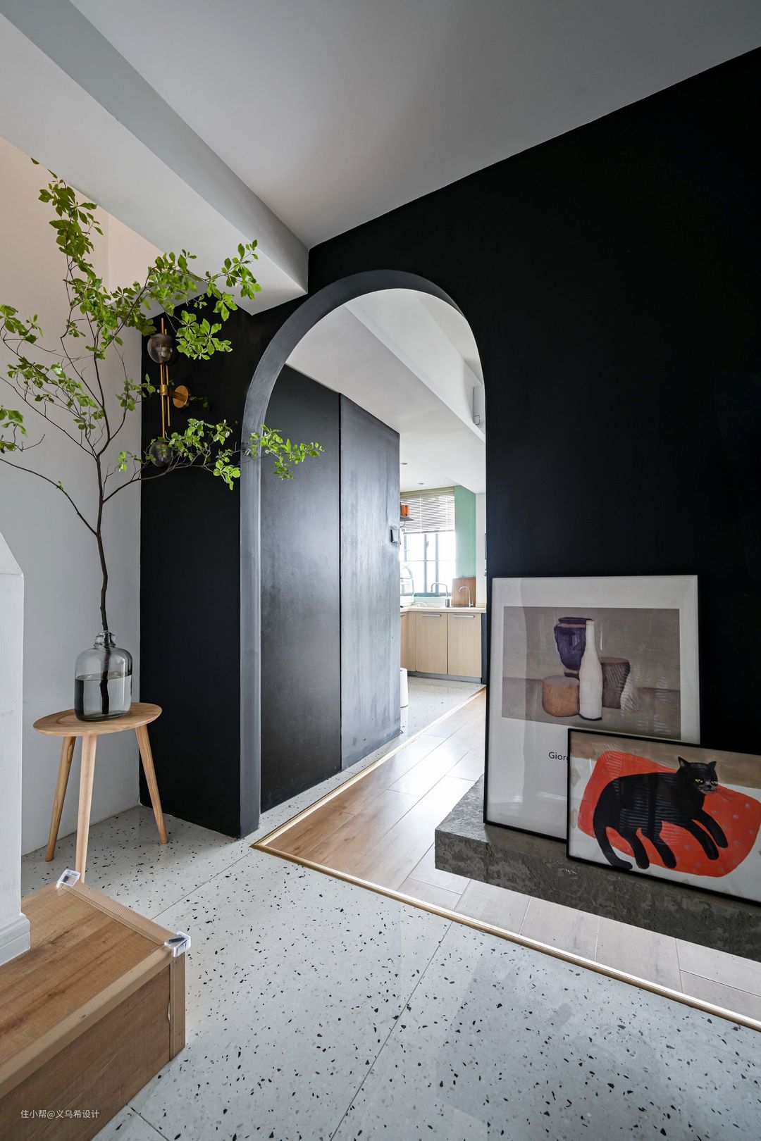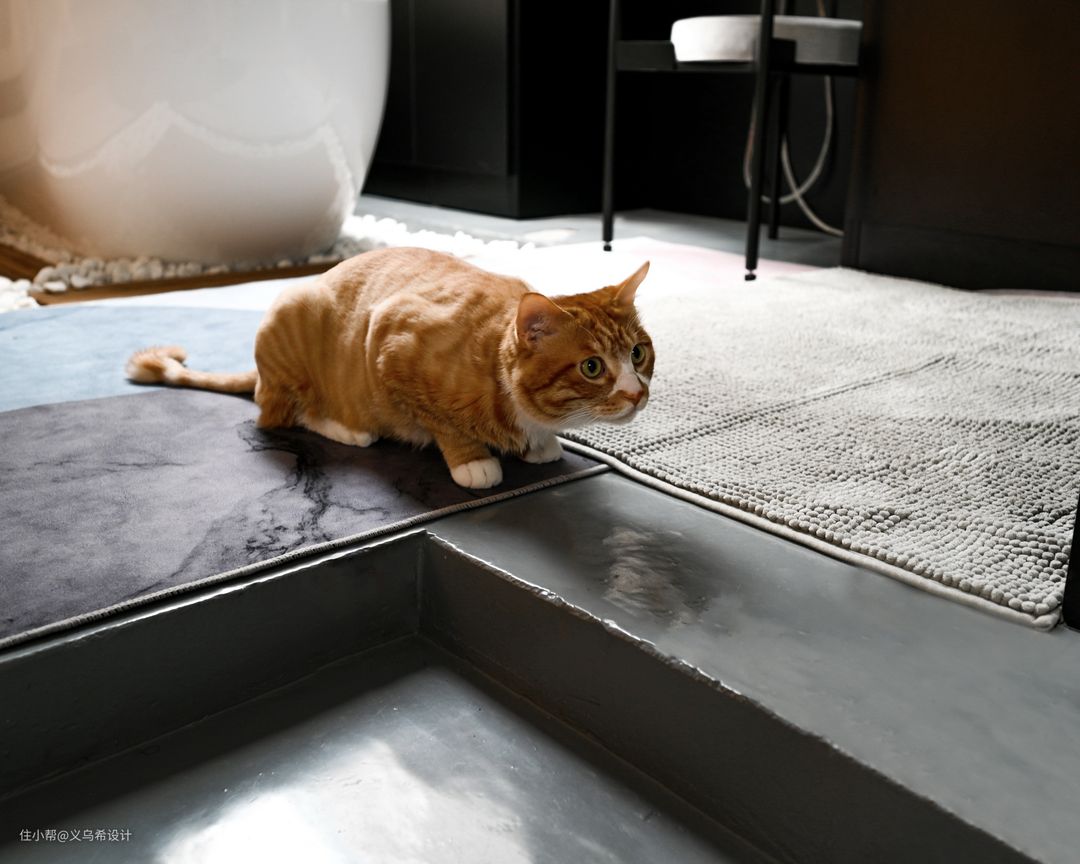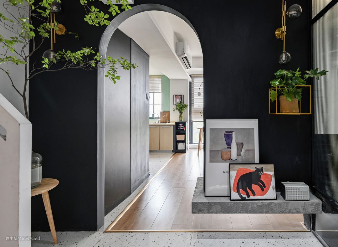 入户门厅正中心位置的“喵先生”装饰画,是设计师亲自为家里的主角之一“蜗牛”精心挑选的主题。