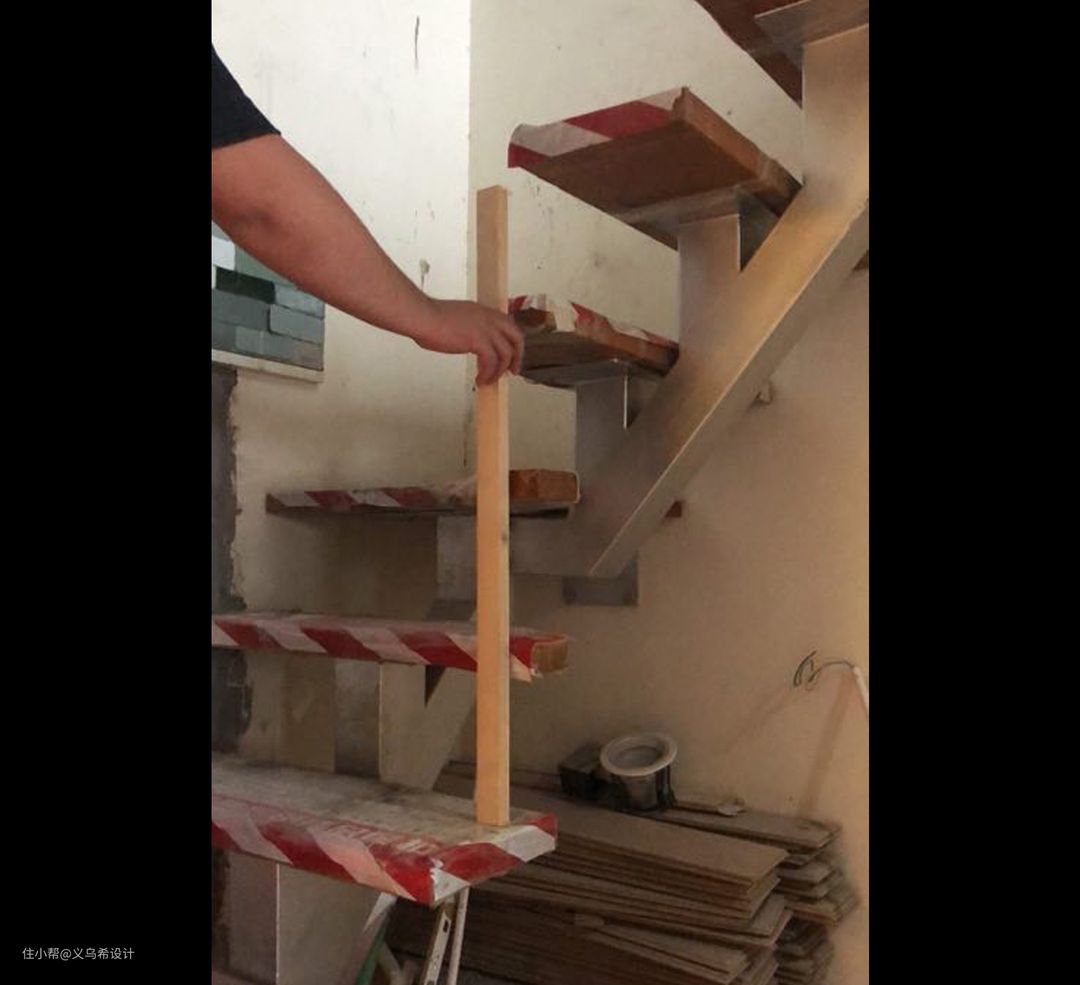 原始楼梯是实木踏步,镂空结构的成品楼梯