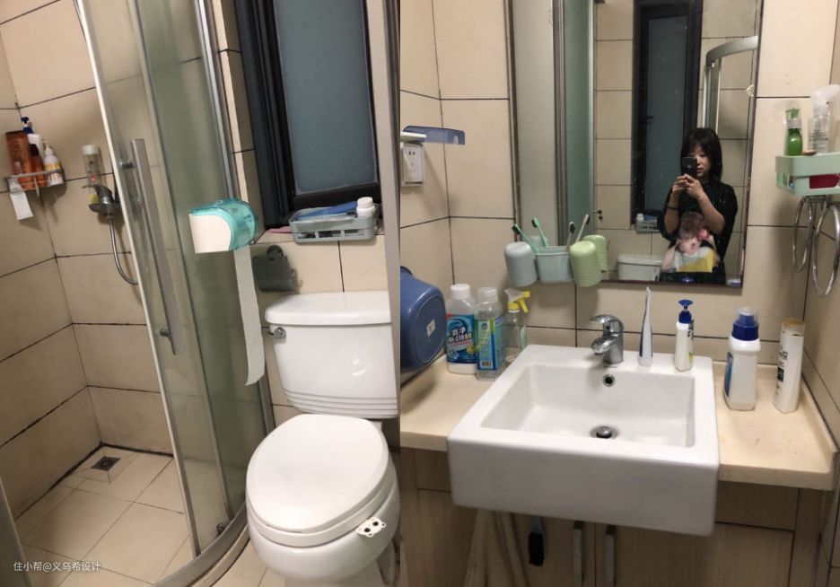 一层卫生间,改造前的卫生间收纳不够,干湿区在一起,使用起来也不方便。