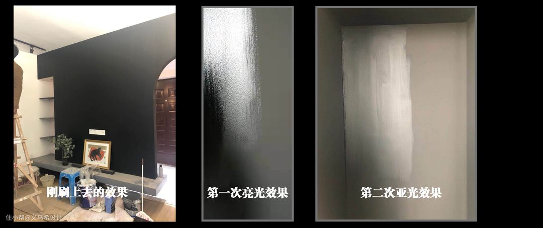 墙面深色乳胶漆一般会建议用进口乳胶漆,颜色正而且还可擦洗。 但是餐厅厨房门厅这一块的黑色艺术漆算出来费用在4000以上,再三考虑后,决定用立邦黑色乳胶漆,为了方便打理,表面再刷上罩光油,最后这块做好工资+材料一共1000左右大洋,过程折腾了好久,光是上罩光油都好几次样,不过最终上墙后还是挺满意的。