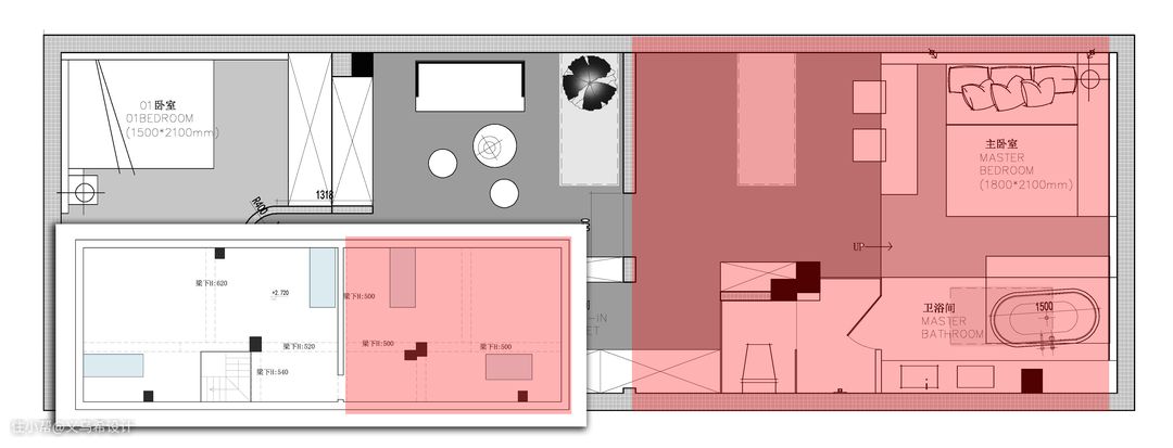 外扩区域示意图,红色位置为一层客厅外的原设备平台。