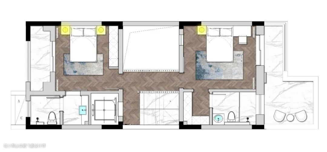 二层是为儿童房与老人预留的房间,内部配备了独立卫生间,方便家中的所有成员都能便捷的起居生活。