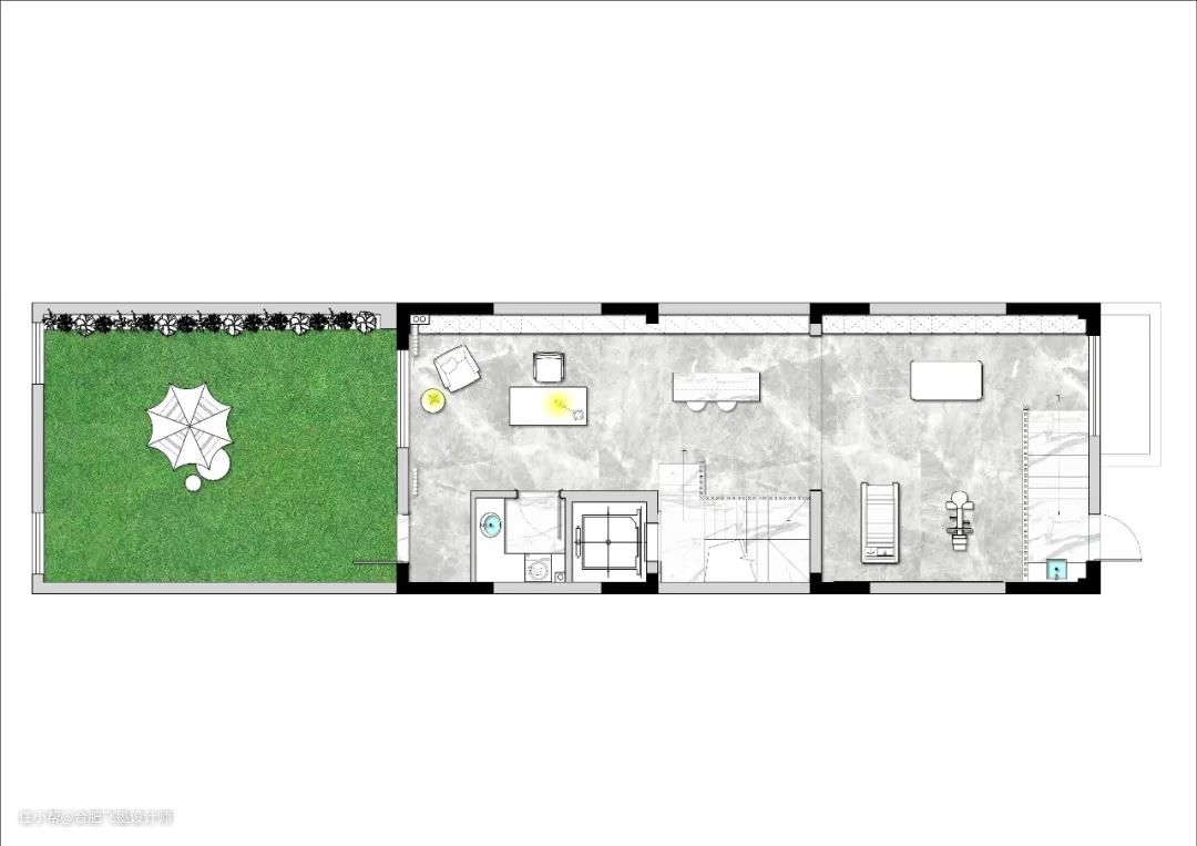 平面布置方案图▲ 从建筑的形态着手,深层次的感受空间的张力,将自然、生活、艺术,与这栋房子交汇,融合,重生。 规划多功能客厅,社交型餐厨空间,全屋安装影音系统;原始天井保留从一层到顶层的挑高,拓宽思路,把景观植引入了室内,设计为景观花园,增加了空间趣味性与生命力。
