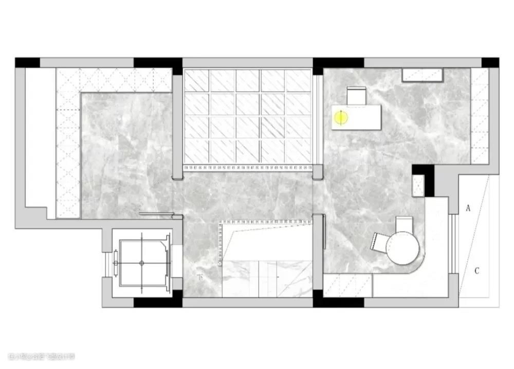 业主的父母在附近有一栋房子,所以业主不常在家做饭,餐厨的空间便不用考虑油烟的困扰,将小阳台扩入厨房,扩大厨房的使用面积,并将餐厅与厨房连接在了一起,做了一个敞开式的社交性餐厨空间