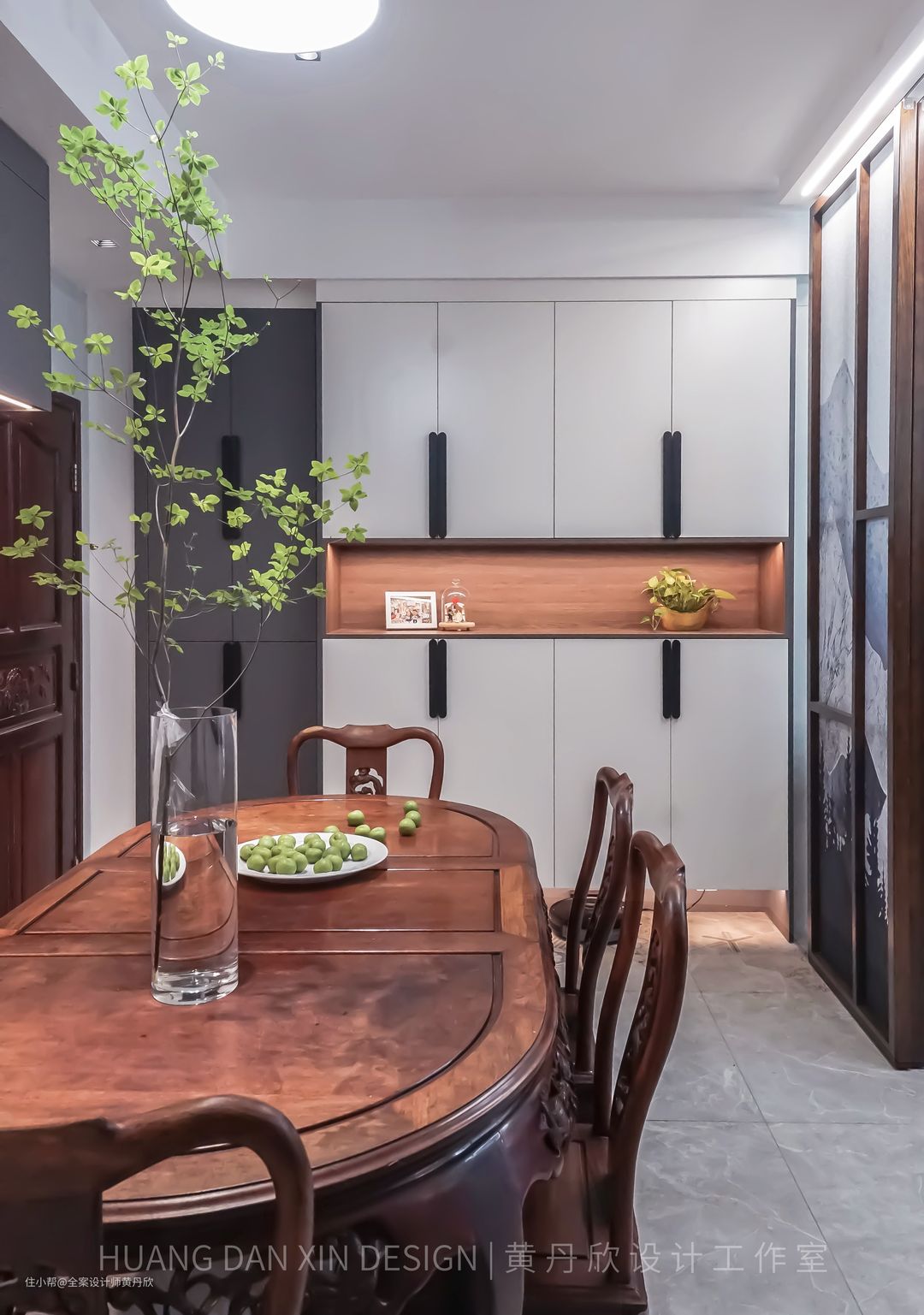 在我看来,设计私宅,其实就是帮委托方设计未来的生活,在工作中能认识这么多家庭,并了解他们的故事,他们的希翼,并跟业主一起互相成就,真的是很幸福的一件事。 这个项目,承载了业主特别多的期待,大致介绍一下项目的背景和改造需要解决的问题: 1.房子是楼龄十几年,格局为三房一厅一厨两卫的的异形结构旧房,原是业主一家的自住房,装修后要作为婚房,并且满足未来三代同堂的舒适居住。 2.因为家人有囤货的习惯,储物空间严重不足,另外业主爸妈有不少中式收藏品,也需要想好如何展示。 3.业主希望房子装修之后,能够扩大厨房,并且保留两个卫生间,其中一个要四分离,但是该房子卫生间没有降板,为了保证无障碍,不能抬高地面。 4.业主父母要求保留家里用了十几年的花梨木家私,但是业主却并不喜欢传统中式的空间氛围,偏向于现代风格。 5.居住升级方面的要求,电器设计考虑周全,并做了全屋智能化和净水处理。 我通过分析空间结构,对空间格局进行重新规划,梳理生活动线,并精准建模,考虑到各个收口细节,并绘制全套的施工图纸,后期在业主和施工方,监理方多方的共同努力下,让设计一一落地,创造出业主“想要的生活”。
