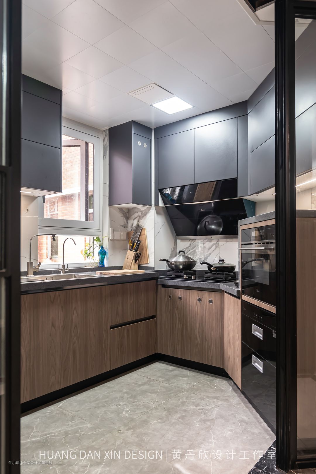 我在设计阶段就帮业主规划好了橱柜的布局,消毒碗柜,蒸烤箱,水槽式洗碗机还有双开门大冰箱都放进去,还有超多储物空间,采光也非常棒,顶部还配置了凉霸,对于每天都做饭的业主一家,真的好用太多了。