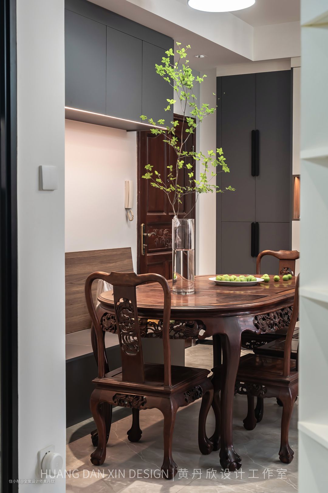 餐厅的红木餐桌椅是原有的,有着属于业主家十几年的宝贵回忆,经过搭配,这套家具很好地融合进空间里面,并且并不显得“老气”,焕发出新的生命。