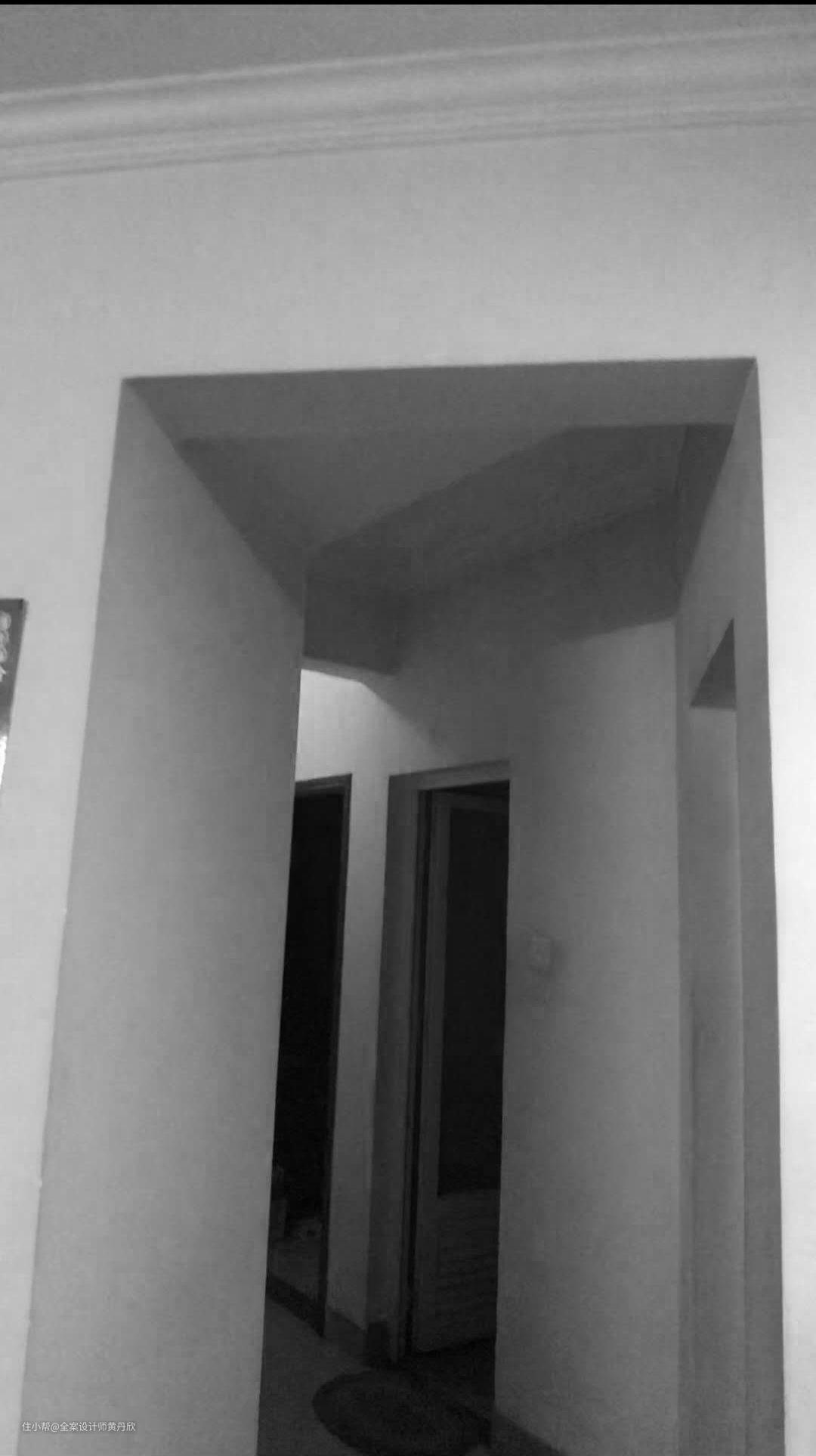 改造前,走廊顶部梁交叉纵横,很乱。而且宽度只有900mm,但是高度却是2800mm,从比例来说会显得走道更窄。