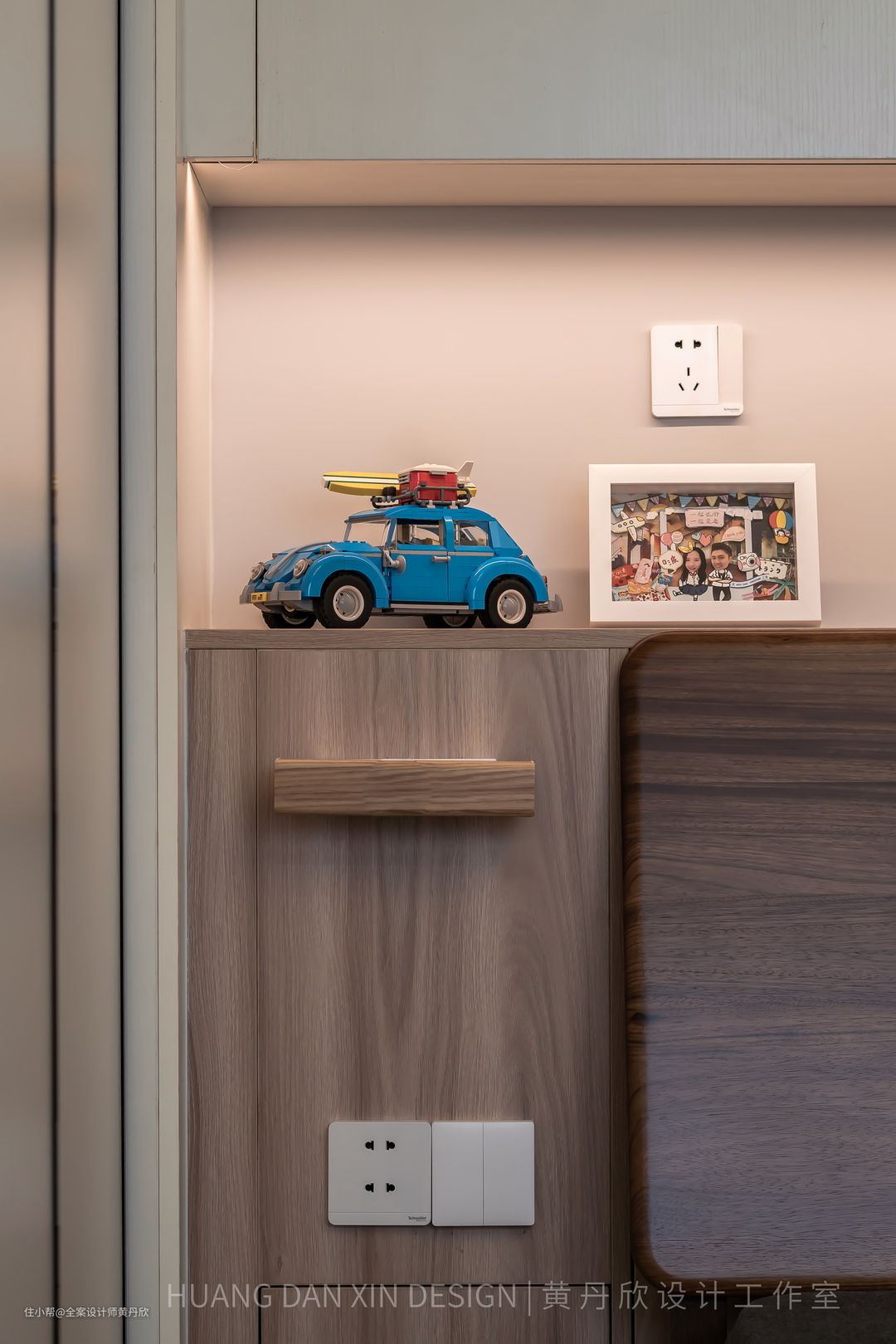 床屏柜上方可以放置一些装饰摆件,还有书籍,睡前还能看看书。