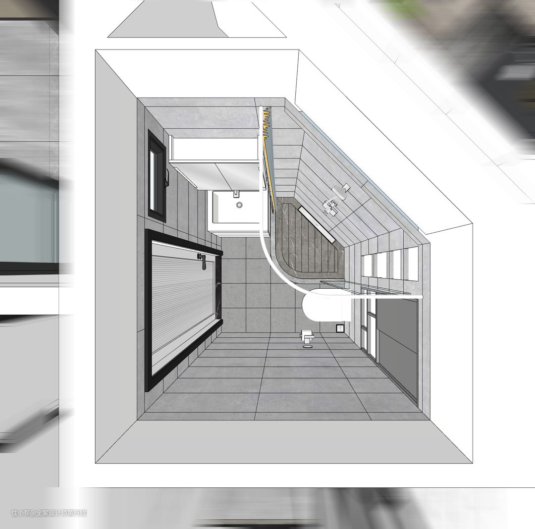 改造后卫生间区域鸟瞰图