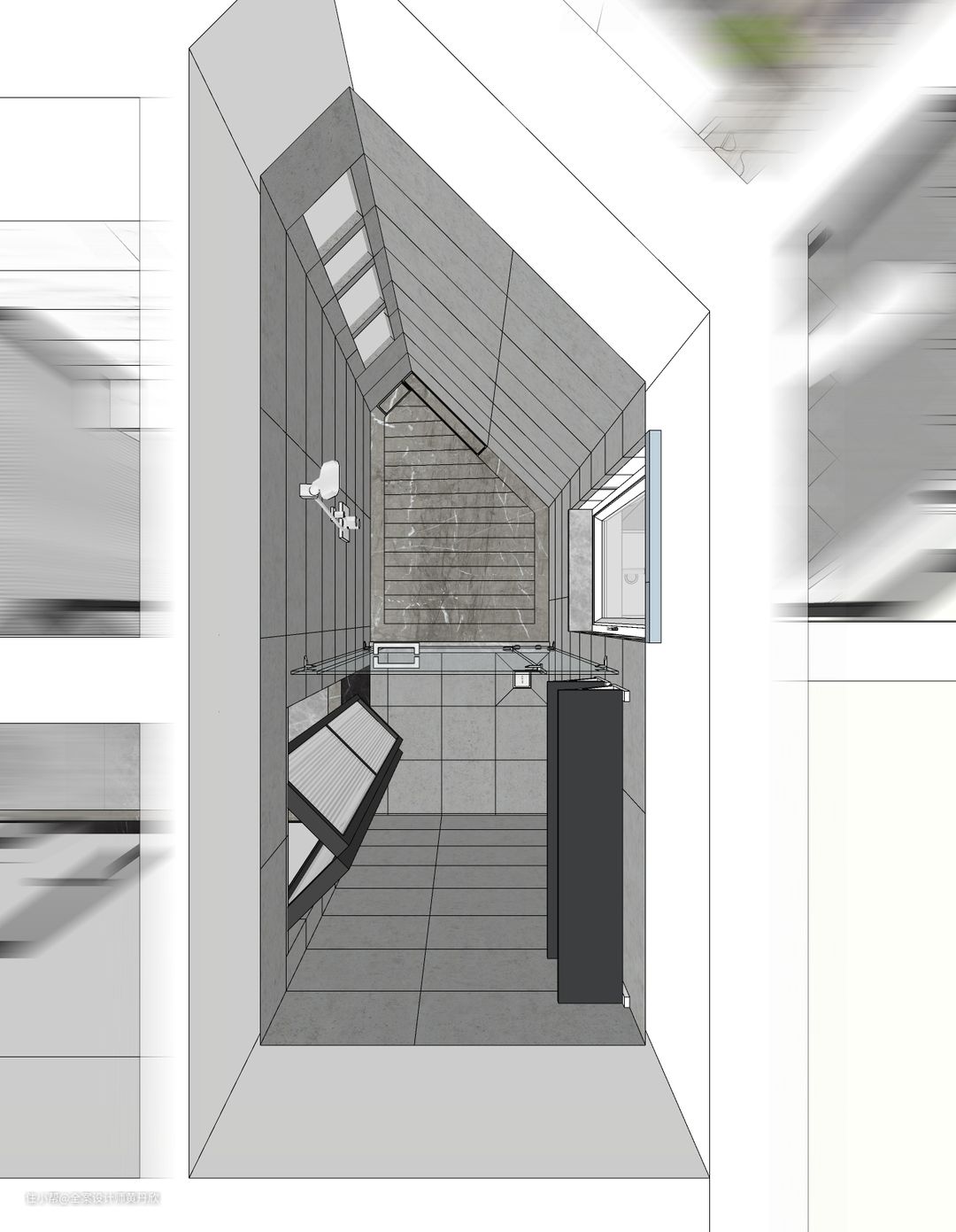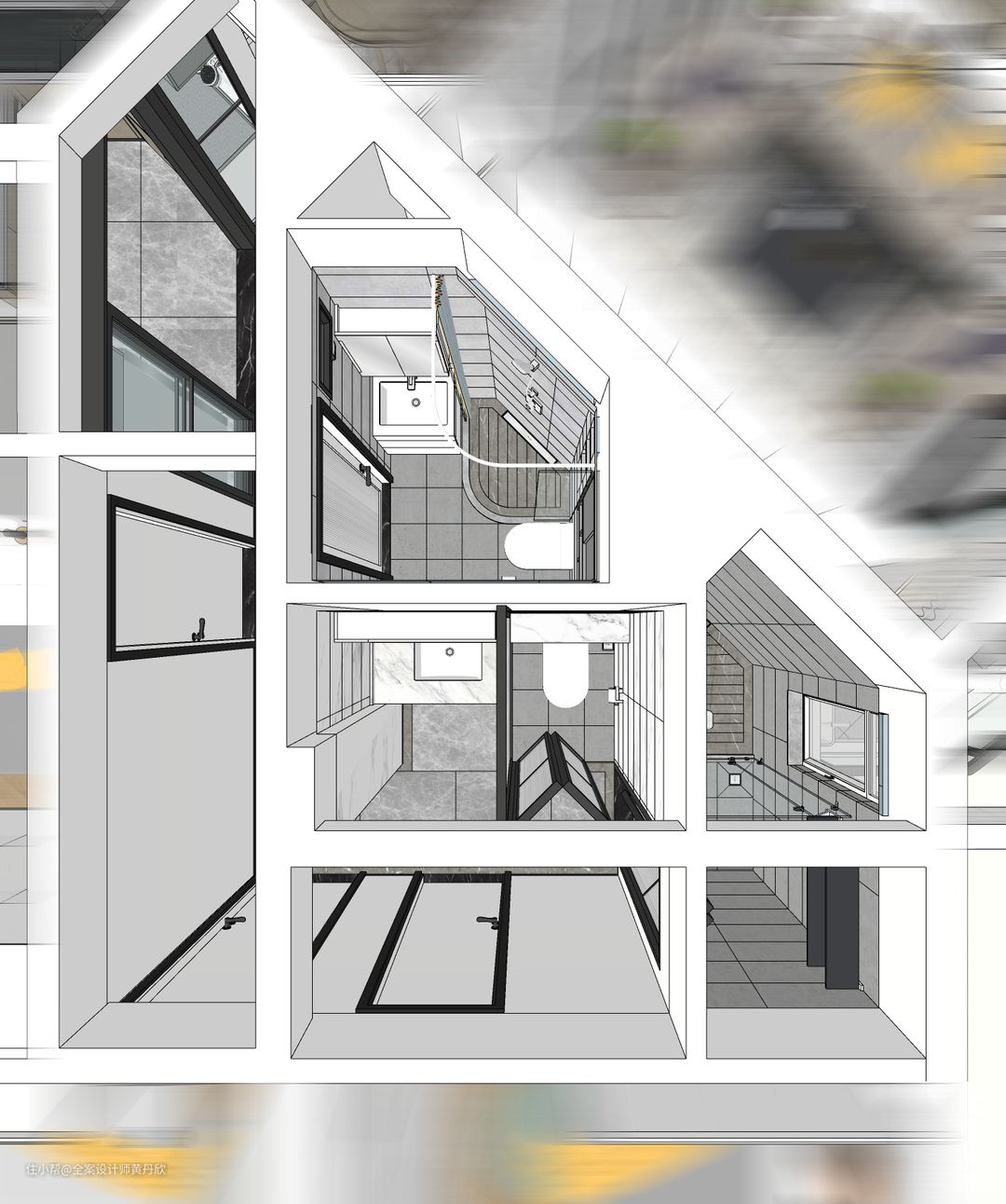 改造后卫生间区域鸟瞰图