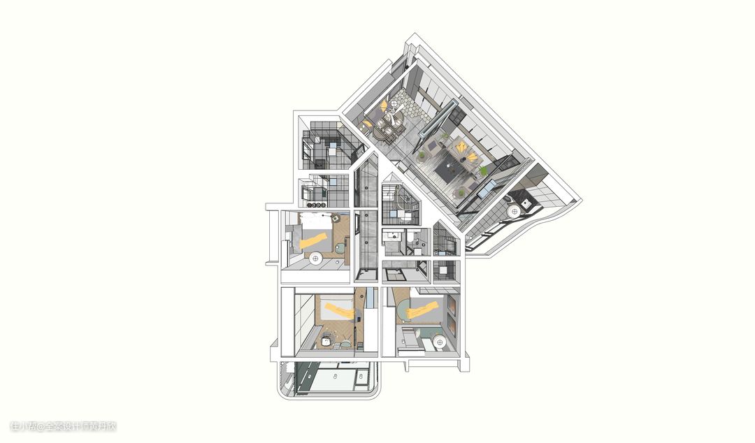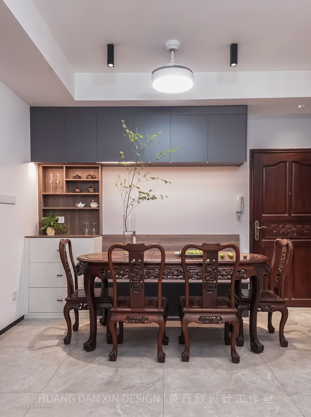 在我看来,设计私宅,其实就是帮委托方设计未来的生活,在工作中能认识这么多家庭,并了解他们的故事,他们的希翼,并跟业主一起互相成就,真的是很幸福的一件事。 这个项目,承载了业主特别多的期待,大致介绍一下项目的背景和改造需要解决的问题: 1.房子是楼龄十几年,格局为三房一厅一厨两卫的的异形结构旧房,原是业主一家的自住房,装修后要作为婚房,并且满足未来三代同堂的舒适居住。 2.因为家人有囤货的习惯,储物空间严重不足,另外业主爸妈有不少中式收藏品,也需要想好如何展示。 3.业主希望房子装修之后,能够扩大厨房,并且保留两个卫生间,其中一个要四分离,但是该房子卫生间没有降板,为了保证无障碍,不能抬高地面。 4.业主父母要求保留家里用了十几年的花梨木家私,但是业主却并不喜欢传统中式的空间氛围,偏向于现代风格。 5.居住升级方面的要求,电器设计考虑周全,并做了全屋智能化和净水处理。 我通过分析空间结构,对空间格局进行重新规划,梳理生活动线,并精准建模,考虑到各个收口细节,并绘制全套的施工图纸,后期在业主和施工方,监理方多方的共同努力下,让设计一一落地,创造出业主“想要的生活”。