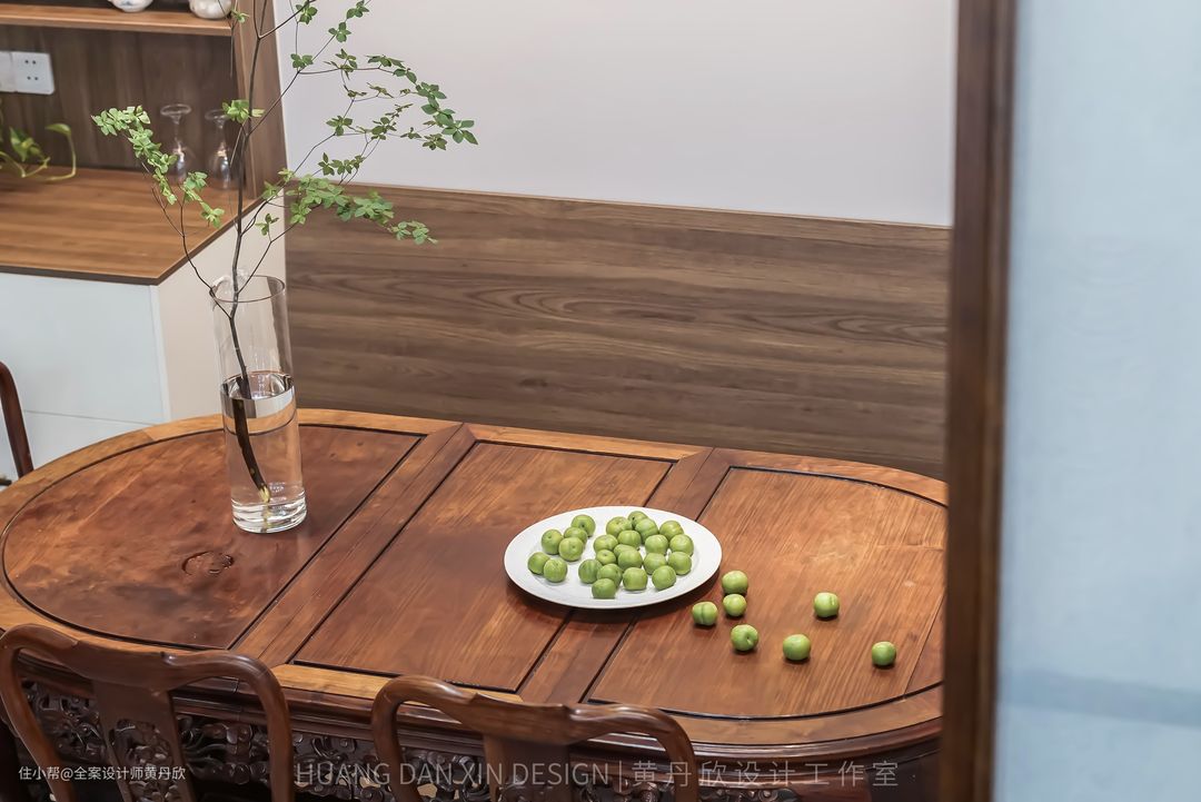 餐厅的红木餐桌椅是原有的,有着属于业主家十几年的宝贵回忆,经过搭配,这套家具很好地融合进空间里面,并且并不显得“老气”,焕发出新的生命。