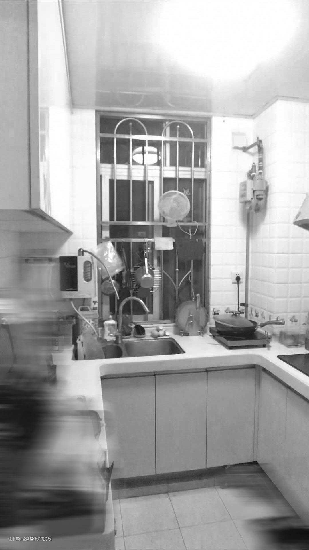 改造前厨房狭小,入口也窄,同时台面操作空间短。