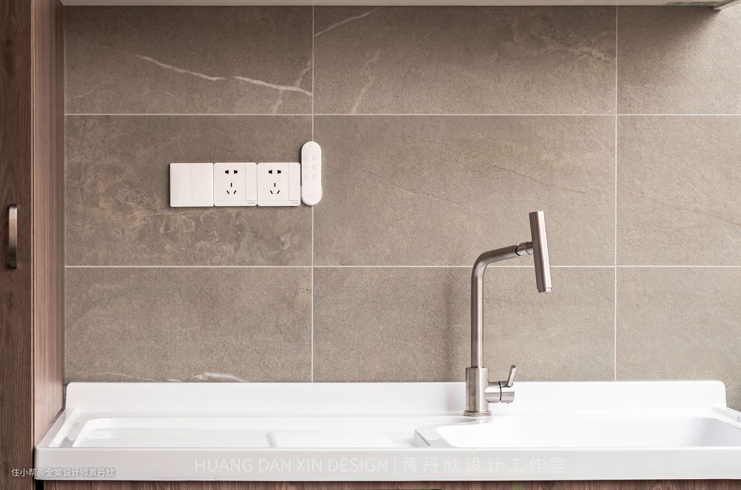 墙面选择了仿岩石的瓷砖,非常有质感。