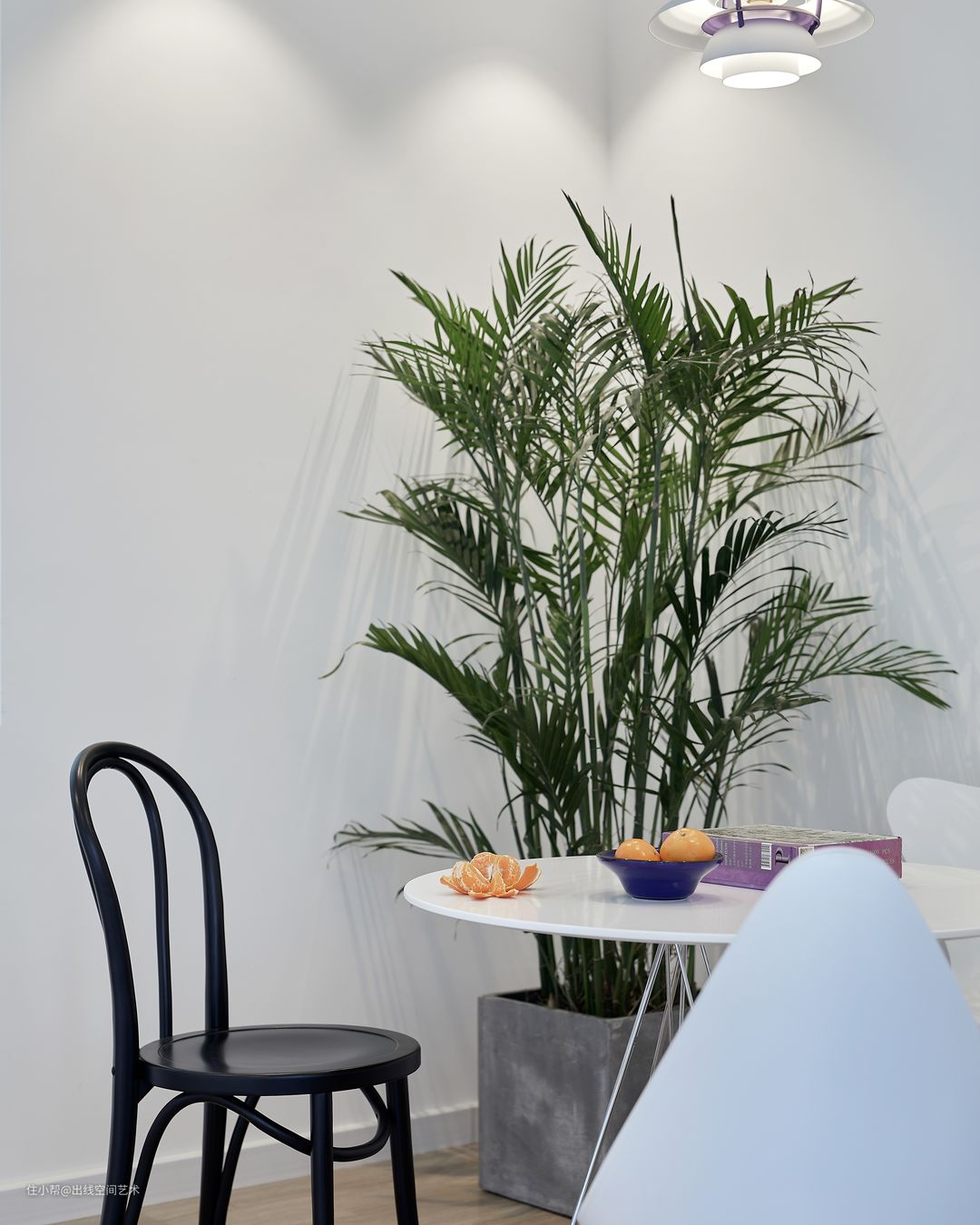 餐厅的家具全部是来自于19/20世纪的设计,山毛榉骨架的黑色Ton 18号曲木椅设计源自1859年Michael Thonet设计的Thonet NO.14,增加了背部支撑力,坐感更加舒适。另外两把白色的餐椅都来自设计师Arne Jacobsen,分别是诞生于1951年的Series 7和1958年的Drop Chair。