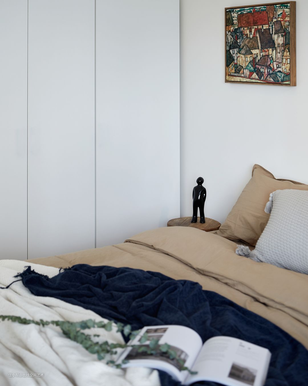 客卧是Echo为将来偶尔来家里留宿的父母设计的,但也不希望是老气横秋的样子。当然不会,在空间氛围的整体包裹下,这间卧室的关键词是“返璞归真的舒适感”。