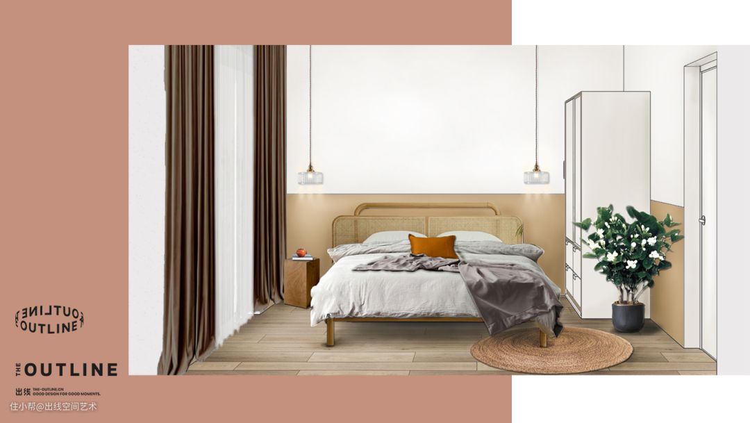 尼斯老城是Echo闲暇时间最爱的去处,漫步其中,阳光让橙色和彩色的墙壁门窗充满浪漫的地中海风情,就算迷路了也是件乐事。看着Echo满脸洋溢的幸福感,我们试图将这样的感受延续到她家中的私密空间。在主卧的色彩系统配置上,我们提取了尼斯老城建筑墙面的姜黄色和粉白色作为墙面分色基准,通过大地色系的软装材质填充和丰富空间层次、氛围。