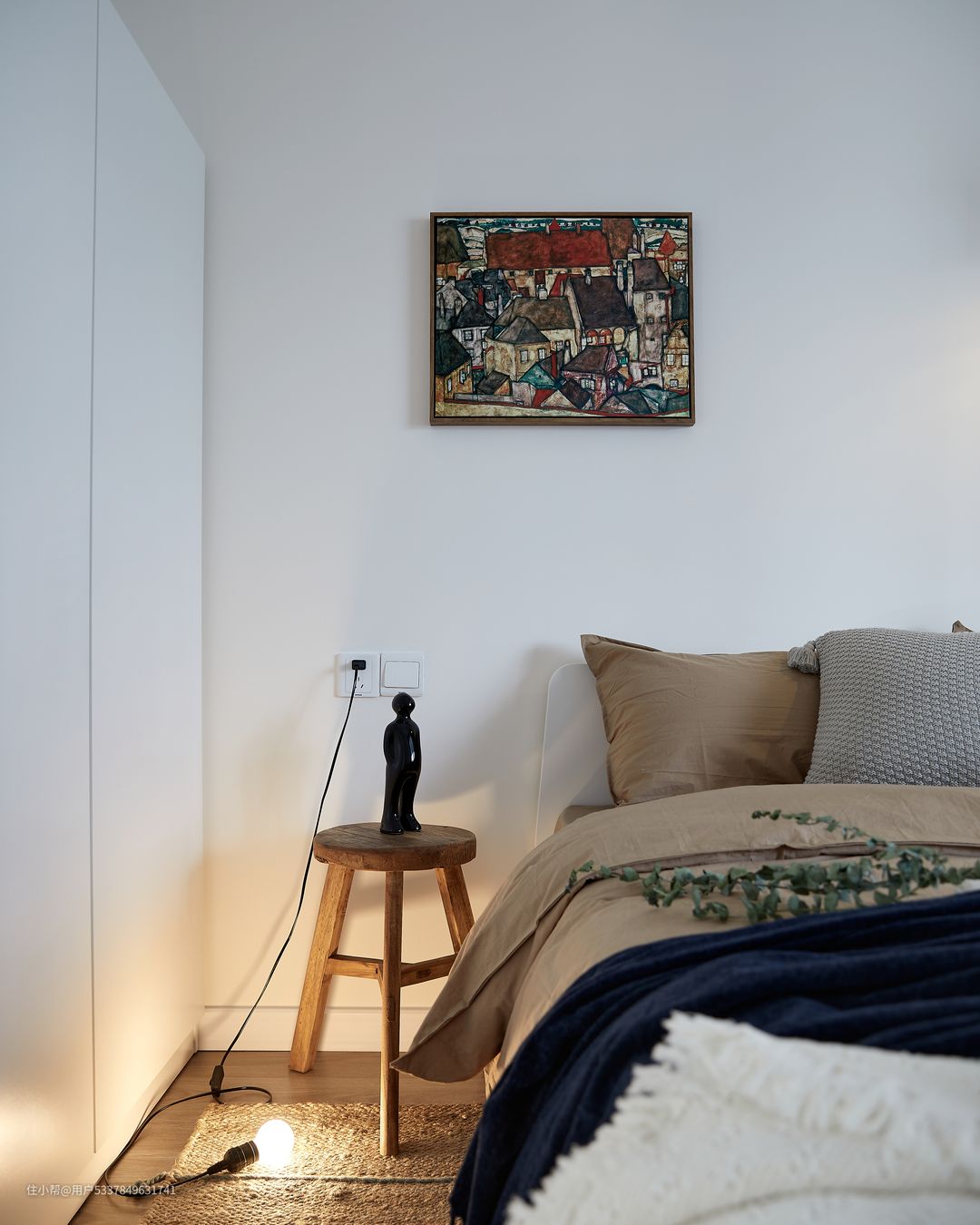 客卧是Echo为将来偶尔来家里留宿的父母设计的,但也不希望是老气横秋的样子。当然不会,在空间氛围的整体包裹下,这间卧室的关键词是“返璞归真的舒适感”。