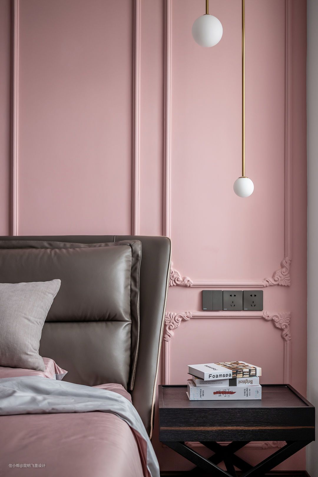 床头采用装饰吊灯或者壁灯,释放床头柜的使用空间。