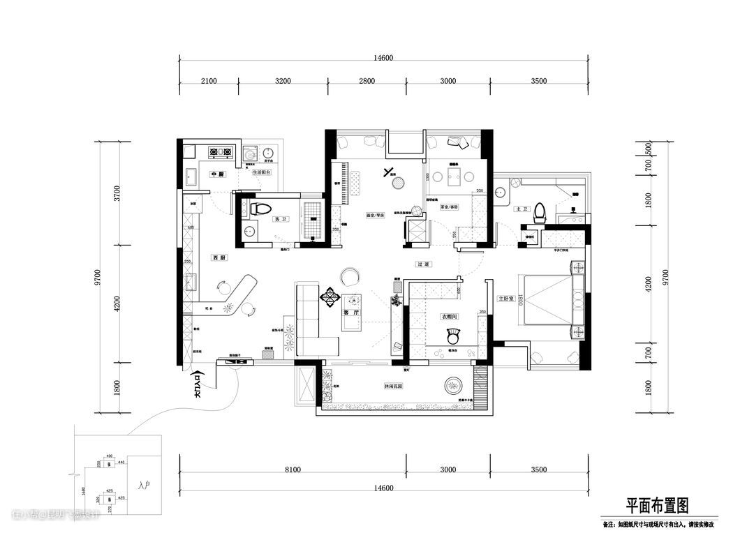 平面规划图 通过与屋主的沟通,我们解决了屋主最初对家的所有想象。 1)由于屋主独居,日常就餐人数不多,我们采取了去常规餐桌的设计方法,把餐区扩大,把入户储物鞋柜和餐区柜连为整体,用弧形吧台作为隔断,形成门厅的感觉,扩大餐厅的空间视觉,同时也保留中厨的空间。在餐区做了大量的储物空间。而且餐区不仅仅是就餐区,也可以是写字区,也可以是休闲区。 2)为了让客厅空间更通透和宽阔,我们把连到客厅一个卧室墙体拆除,把画室和琴房与客厅连为一体,然后把另外一个卧室缩小,并且用玻璃做隔墙,这样进一步增加客厅空间的通透性。 3)面对客厅的次卫空间,我们把这面墙做了整体墙板和隐形门融为整体,增加客厅的完整性