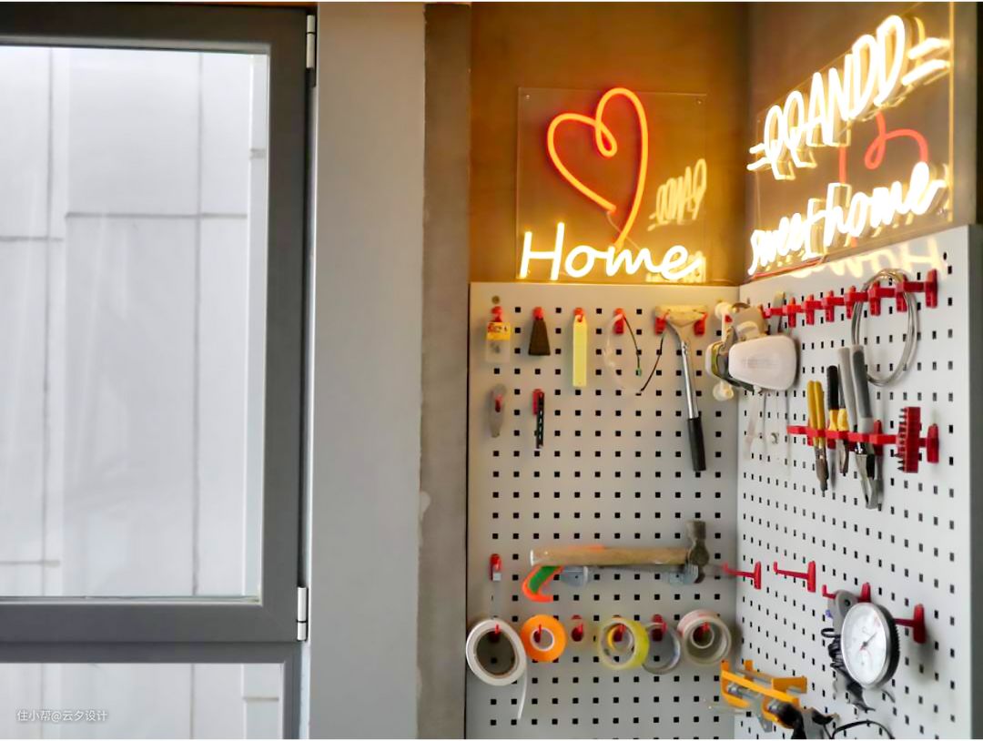 阳台墙面做的洞洞板,手作的工具。霓虹灯浪漫的趣味。#洞洞板