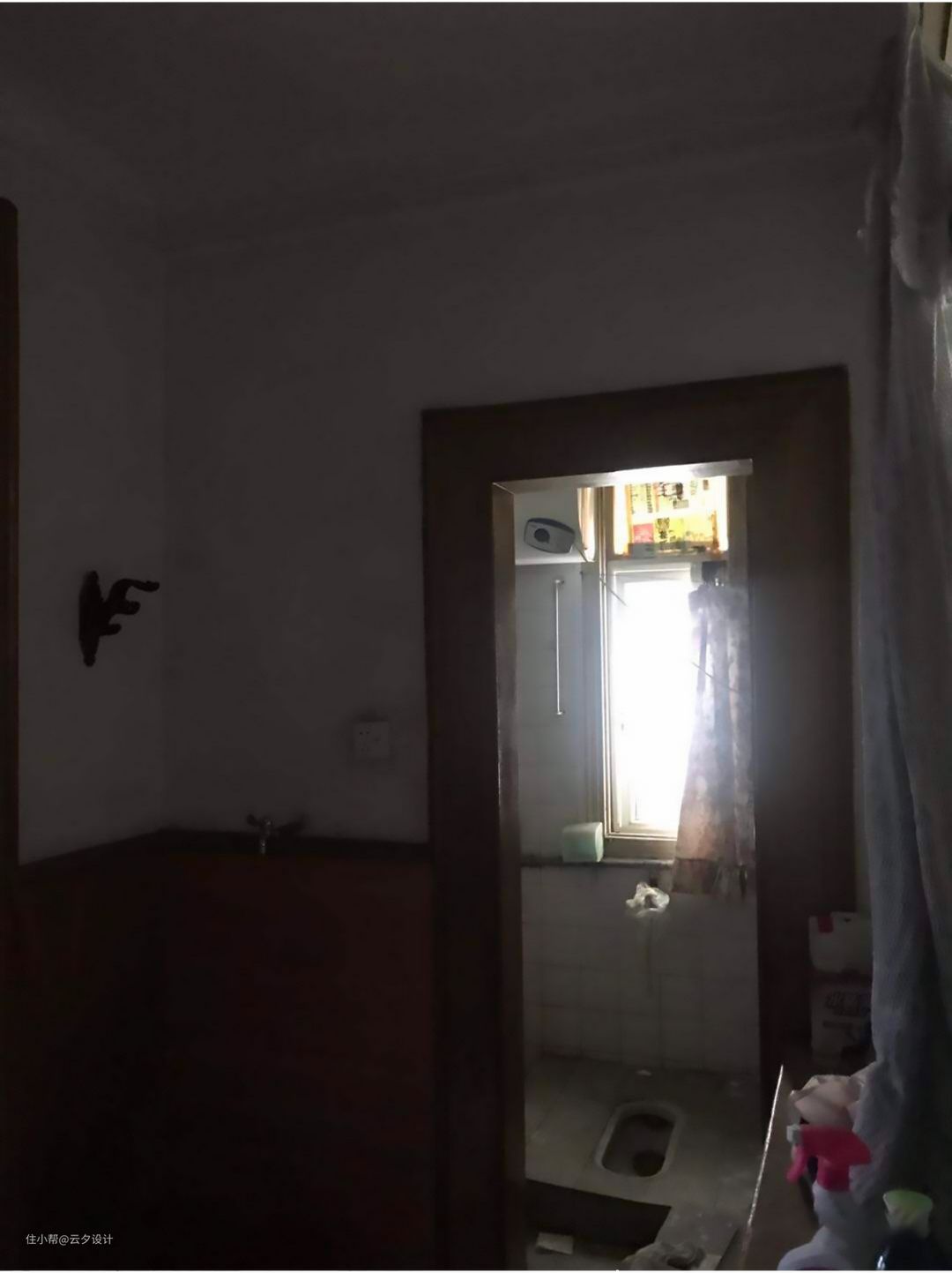 这张图是原来厕所的位置,门口的过道处比较浪费,由于有一个大柱子,这一块的位置不可能作为其他区域,在设计时把这里作为了一个功能超级强大的功能区。