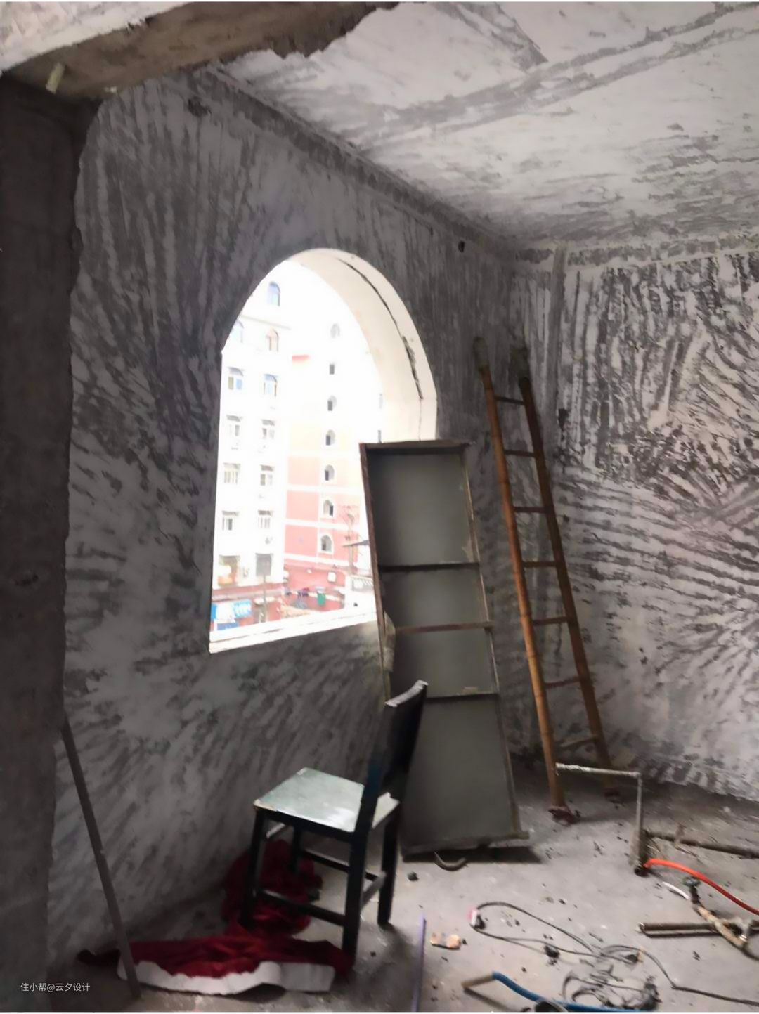 原有卧室的小圆窗户,窗台比较宽,考虑利用窗台的宽度做一个书桌。