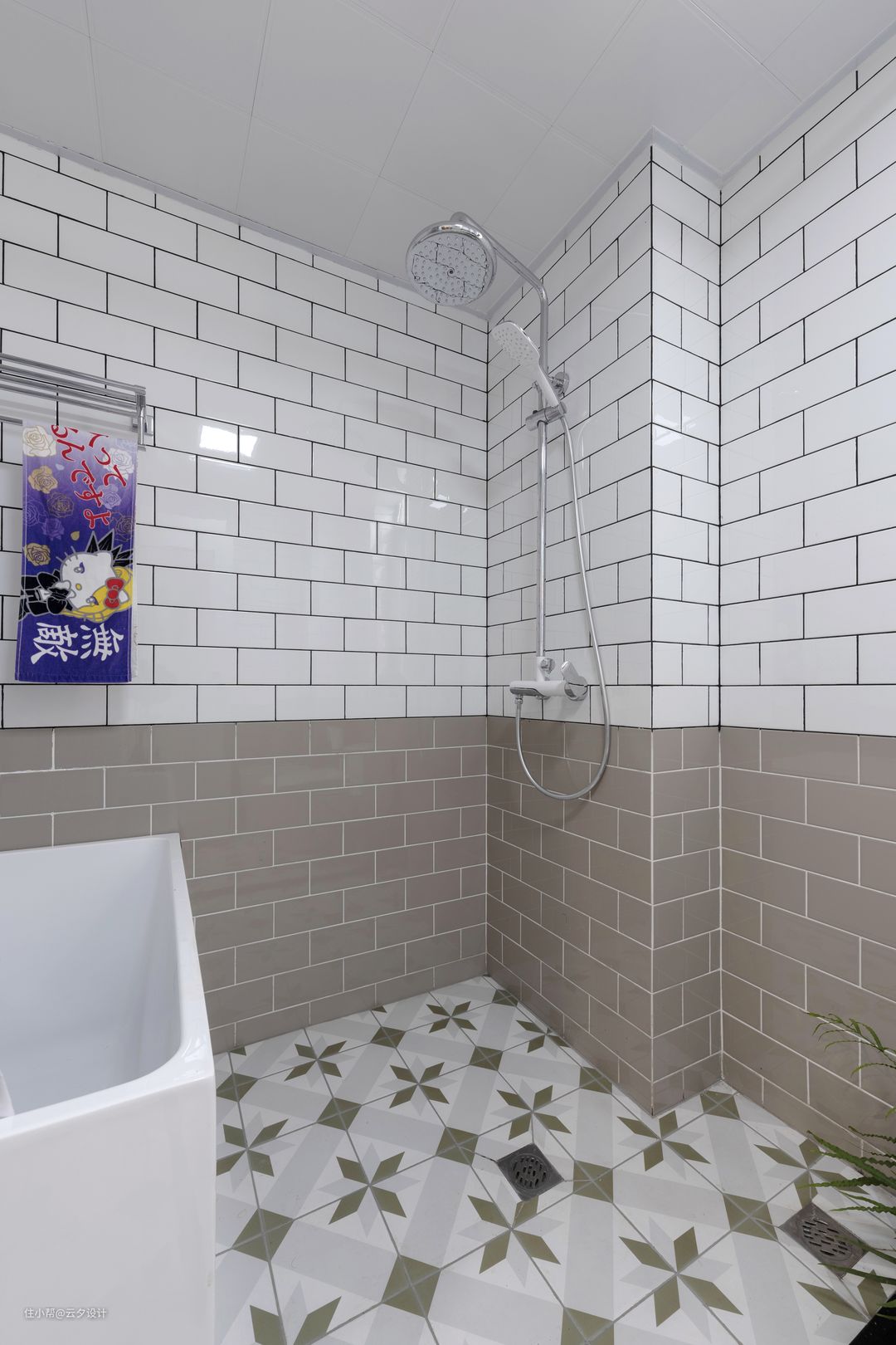 原有厕所的面积太小,我缩小了主卧多余的空间,扩大了一点卫生间,挤出小浴缸的位置。墙面用了颜色分层的地铁砖,小厕所看起来更有层次。