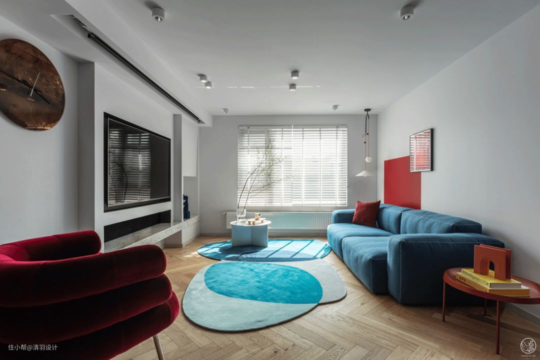 有电视、有茶几、有沙发、明亮的窗户前有百叶窗、有红蓝cp配色,没有光怪陆离与出其不意,反而是这一次它最自在的表现方式。可是当你放松的往沙发扶手上随意靠下,却又能惊奇的发现新大陆。