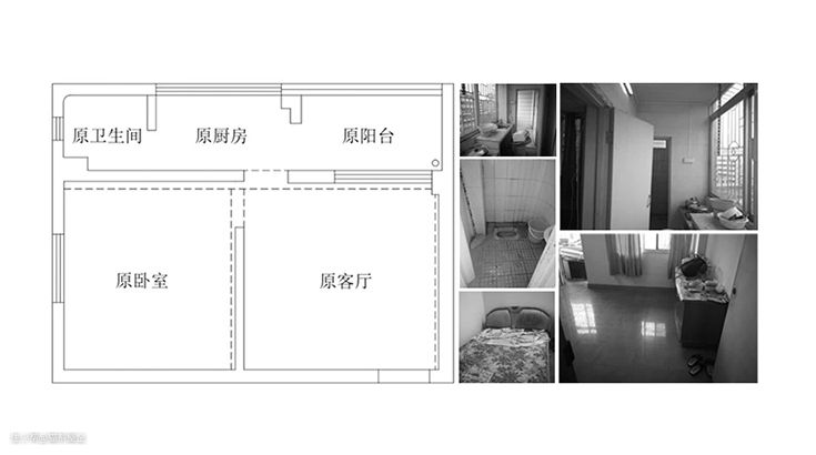 业主猫小姐买下的这间屋位于广州番禺,是间老旧的二手房,我们第一次去现场实勘,一进客厅看到的是一张20年前的旧电视柜,上面堆满杂物,厨房和卫生间连在一起,这种不合理布局在以前很常见,走进卧室一眼便看到一张黑黝黝的床,我们戏称它好像“上世纪打工妹之屋”。 虽说这间屋的布局和功能老旧,但它也有两个优点:户型方正,实用率高;坐北朝南,采光非常好。 房屋位置:广州市番禺区 房屋面积:建面33㎡ 房屋户型:一室一厅一卫一厨一阳光房 常住人口:一人一猫,偶尔业主妈妈会来 改造需求:瑜伽空间、开放式厨房、扩大卫生间