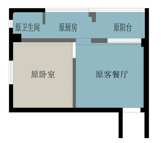 改造思路: 1. 打破原有平面布局的束缚,提升空间实用率 2. 用色彩提升空间趣味 3. 小户型收纳升级。 业主猫小姐是一个工作在广州的单身女孩子,从事策划创意行业,本身对审美和生活的追求有一定高度,“工作时是女王,回家后是公主”说的就是猫小姐这样的女生。 买下这间房,平时自己和猫咪“八宝粥”一起住,偶尔妈妈会来陪伴。 一个人在家时喜欢看书、撸猫、做瑜伽,非常希望有一个让自己放松下来的休闲空间。 同时自己做饭的时间不多,而且少油烟,可以接受开放式厨房。 根据业主的需求,我们对平面布局进行了比较大的调整: