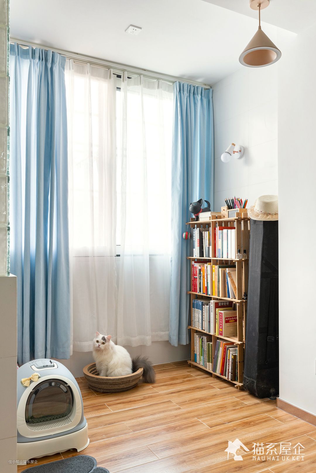 更多时候,从事策划创意的猫小姐需要从阅读中汲取灵感和能量,猫小姐会从书架上拿下一本心仪的书,坐在地毯上或者沙发上,翻开书签的那一页继续昨天的阅读。 猫小姐的涉猎范围很广泛,文学、时尚、摄影、健身都是她书架上的常客,对设计和审美也有一定的见解。 和我们沟通的时候,猫小姐居然对设计也能侃侃而谈,极大的提高了沟通的效率,让我们从心底里对像她这样独立自主的女孩子刮目相看。