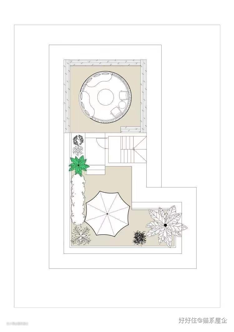 户外阳光伞和绿植的天台角落,懒洋洋的。