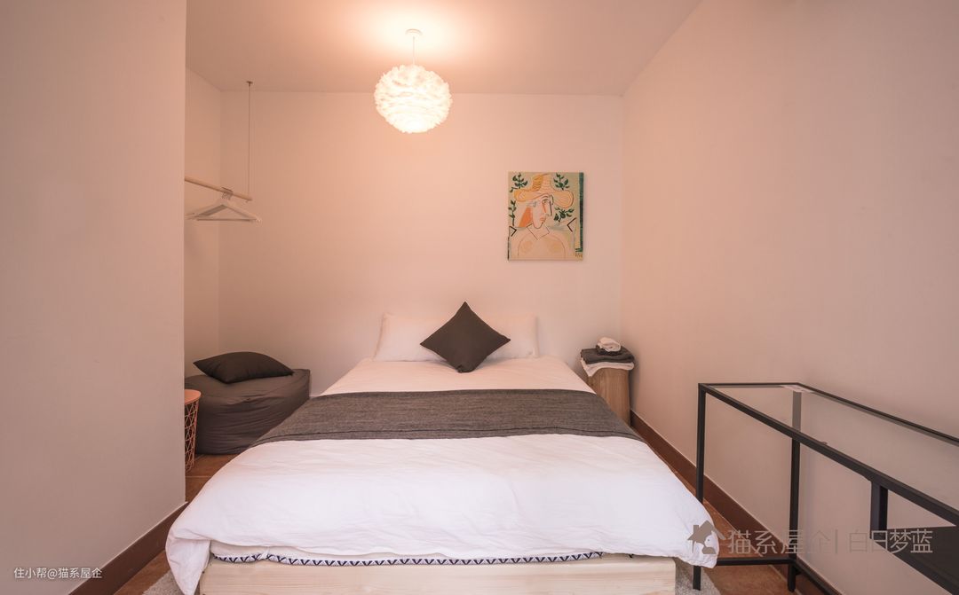 墙面的装饰也是别具一格,无床头的设计节约了空间。
