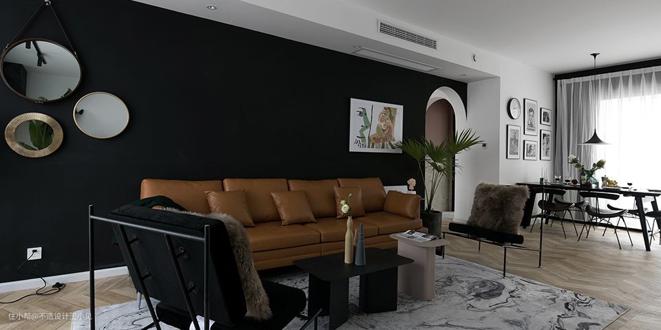 问:空间种如何运用好深色?深色会显得压抑吗? ●每个人对色彩的情绪反应不同,有人觉得暗色调是压抑,有人的反应是舒适,我一个朋友家,他开门往往客厅就亮着一盏台灯和壁灯,主要看你属于哪一种。 ●深色如果要保持通透感,一方面是采光好,一方面是深色用在什么位置,怎么用很重要,比如在客厅,我就用了三面圆形的金属镜子让黑色的沙发背景墙更加透气。 ●还有一点我认为非常重要但容易忽视的是,很多同学在找灵感的时候看到再好看的图,都是二维平面的,记住你在考虑的是空间设计,不是一个平面图设计,电视墙怎么设计好看并不只取决正面看啥样,不注意3维空间效果的考虑,效果往往差之千里。 问:全屋基本都是网购商品,有什么经验可以介绍给大家? 答:现在网购家居,从产片到物流到消费者供应链已经非常成熟,不管预算多少,其实我都比较推荐网购。但是有一些个人经验可以和大家分享: 小件家居看到喜欢的不用由于,收藏起来购买吧,退换都买啥问题,难的是大件商品。 大件商品如沙发,餐桌一类最好选择大店的商品,如果是小店可以问一下店家拿实拍图对比对比,发货前手动确认颜色和尺寸,以我的经验,其实真的容易出错。 如地板窗帘一类不要嫌麻烦拿样,先让卖家寄样品对比再选规格。