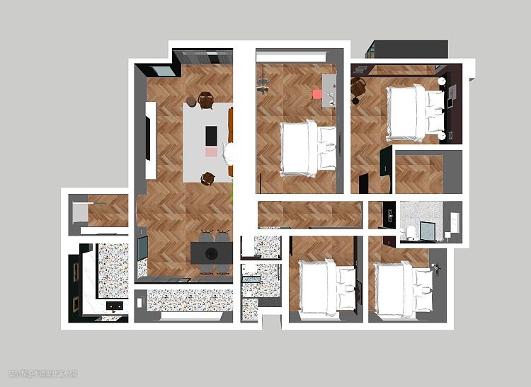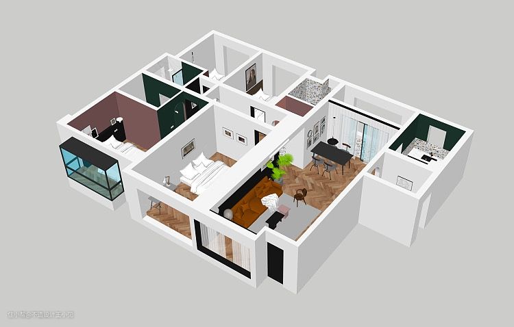 业主的空间的需求: ●空间氛围上,业主既喜欢深色调的带来的质感,同时也喜欢不要显得沉闷,同时也喜欢空间的色彩在协调的基础上丰富一些。 ●业主前期短期内房间可能会空闲时间可能会出租民宿,房间都作为风格有特色的卧室使用,同时以后自己常住便于添加需要的家居等。 ●在客厅的功能上,传统电视墙可以去掉,餐厅会作为工作区和用餐区,颜值要高高的,沙发区域希望从设计上就杜绝以后的乱糟糟,不希望在茶几上用餐等。 ●预算要控制的稳稳的,颜值要高高的,同时确保环保和健康即可。