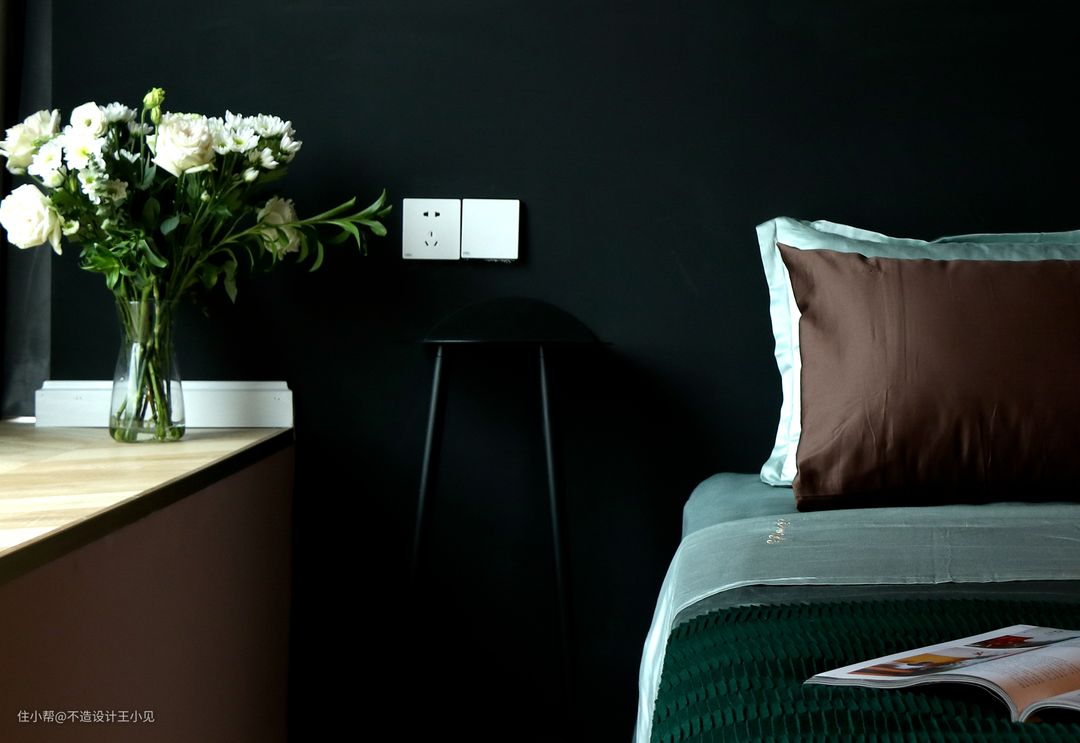 设计思路: ●敲掉一侧阳台的墙体,打通客厅空间,更加契合客厅阳光通透的优势。客厅在色彩上整体上通过深色乳胶漆营造黑白分明的空间氛围。 ●客餐厅区域的功能上,餐厅选择了1.8米的大餐桌,方便用餐,也可以临时办公,而茶几选择了大小组合的高低铁艺茶几,小茶几不会再有人喜欢在茶几上吃饭啦。 ●成本控制是设计的一大重点;全屋的几乎全部软装,和主材的瓷砖地板都是网购,网购达人的我完成的很好。