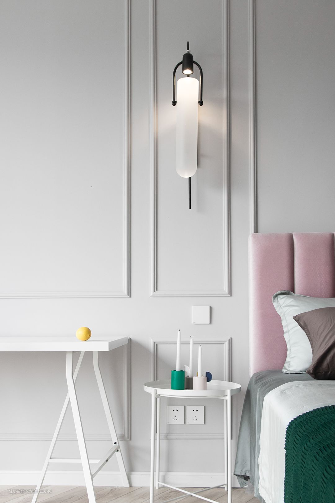 卧室并没有添置衣柜,不过预留了足够的可能性,后期居住后购买成品衣柜即可变身温暖卧室,高级的灰色乳胶漆使整个卧室温柔舒适。