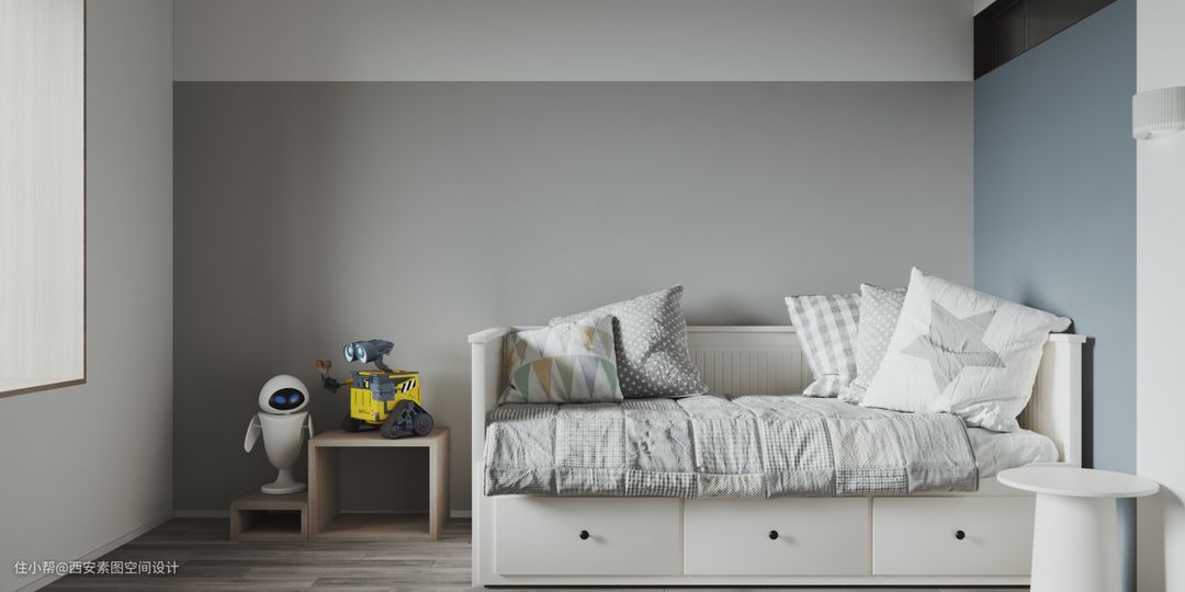 儿童房使用了温暖的配色,为孩子营造意境,培养良好的心境。