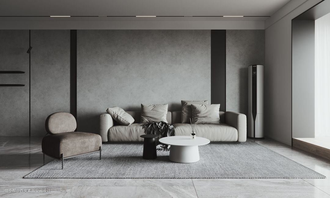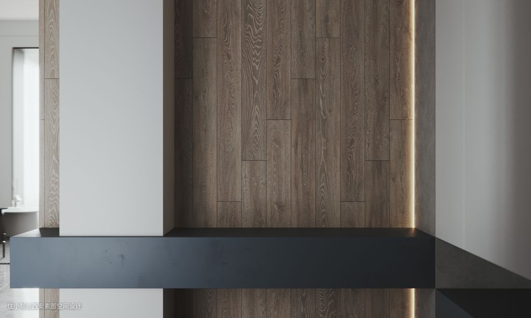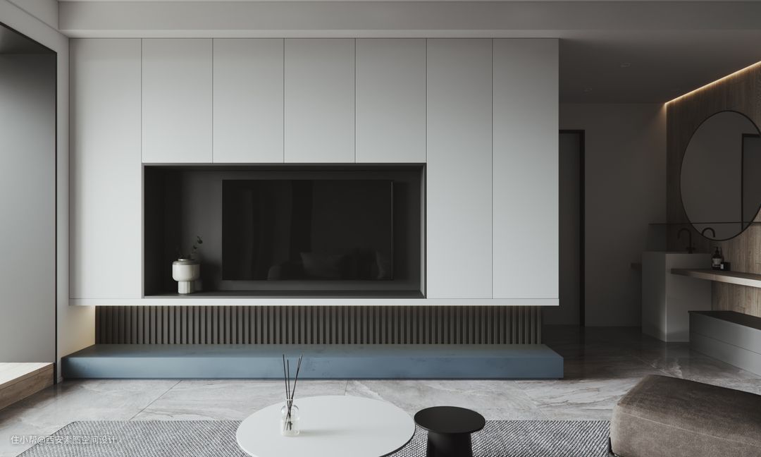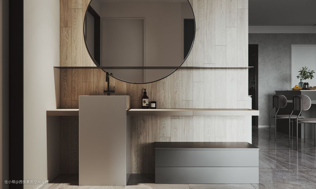 人们对于质感生活体验,大多数时候在于生活层面,设计师则是把质感生活注入作品中,来成就质感的生活。 低调的水泥灰搭配白色、木色元素,增加了质感的同时丰富了空间的层次感。墙面柜子的存在则解决了公共区域的储物收纳问题。