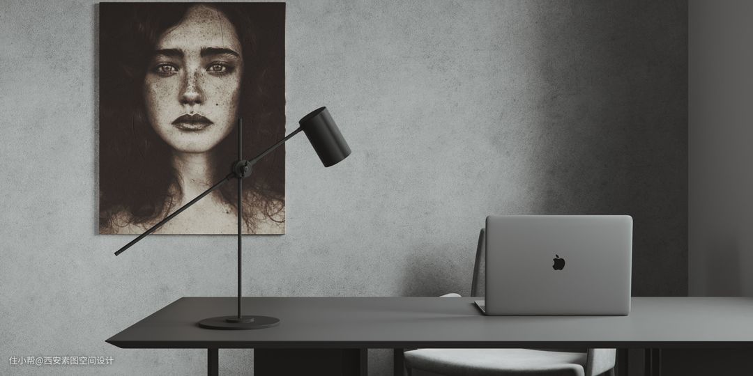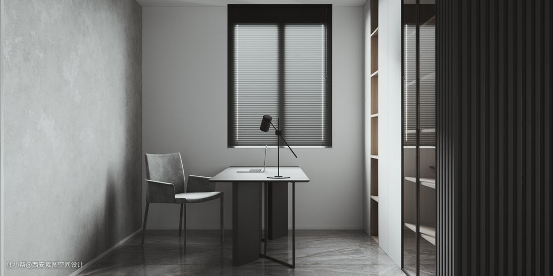 在本案书房是一个空间过渡的角色,配色上保持了和餐厨区域的统一。
