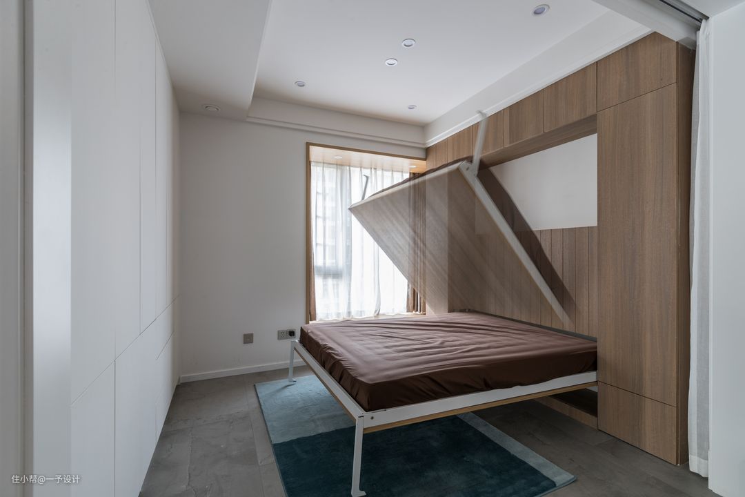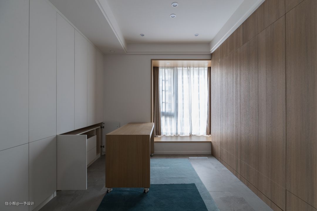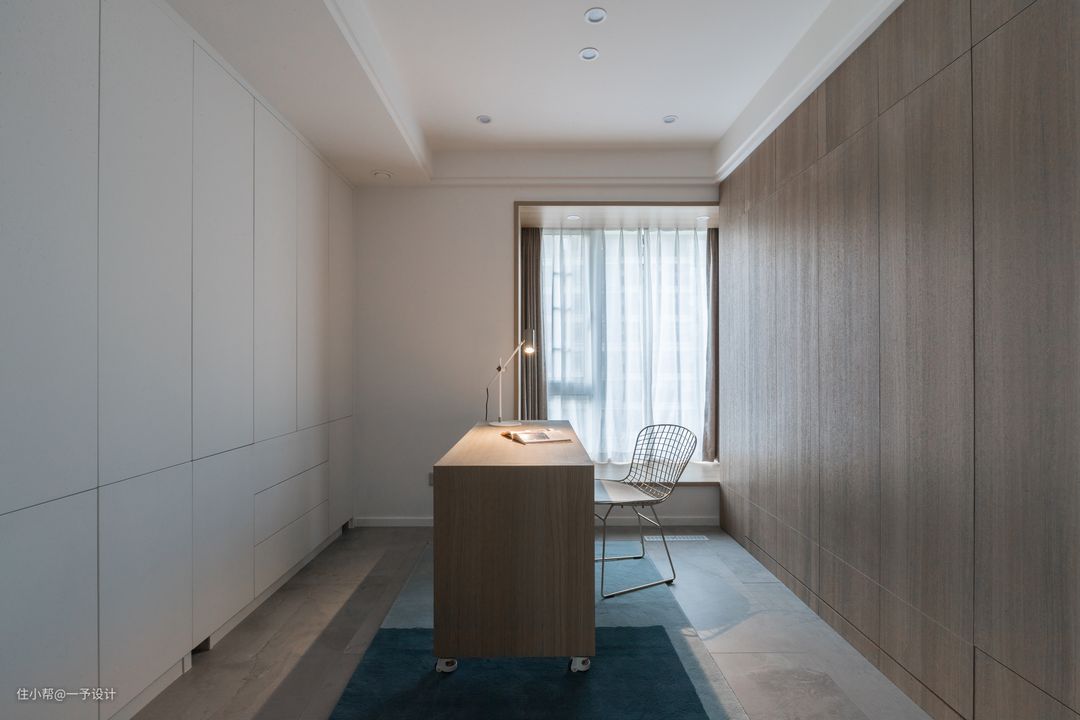 ▲原本房子主打的是四房的户型结构,朝北两个房间原本是很小的,可以说比较鸡肋,设计考虑的初期就把中间一个小房间一分为二,一半作为西厨,一半增加书房空间,增加储藏空间,这样书房的可变性就变得很强。