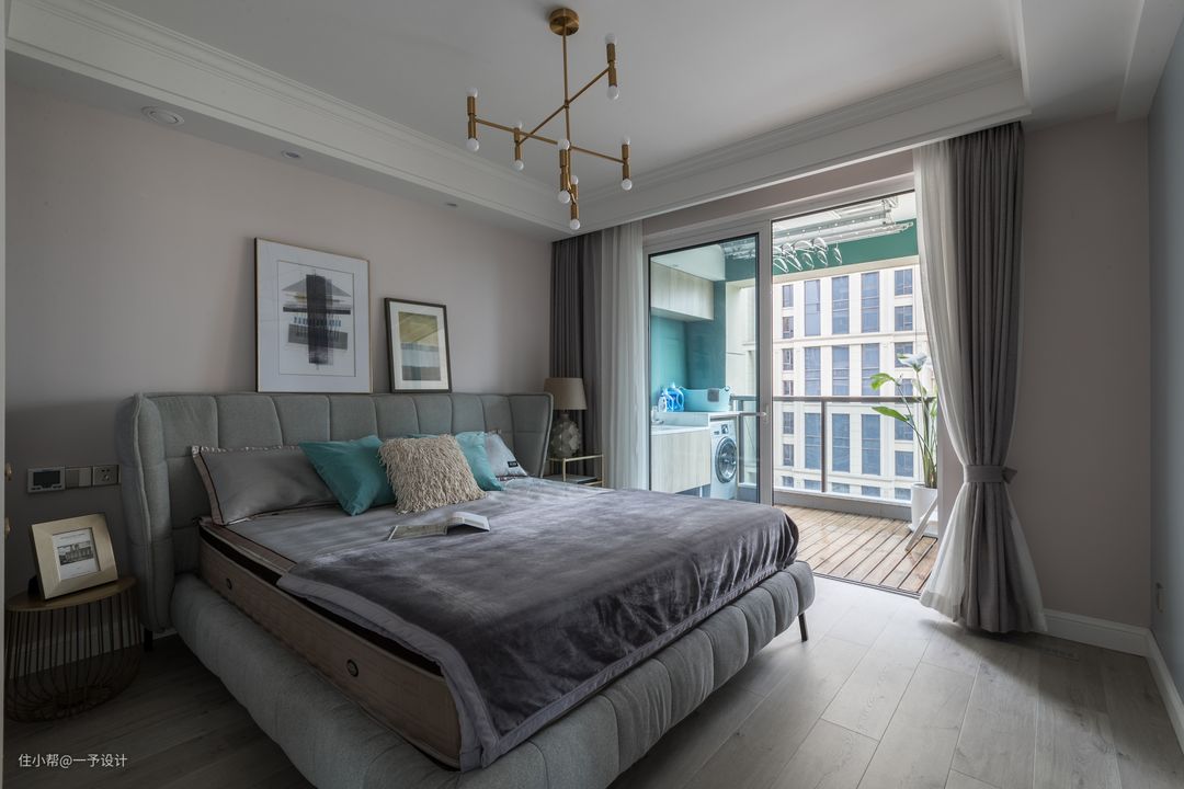 ▲和餐厅一致风格的分子灯、衣柜,主卧的装饰搭配一脉相承。但也露出不同,床头柜、装饰画、台灯表达了业主私密空间的个性化。