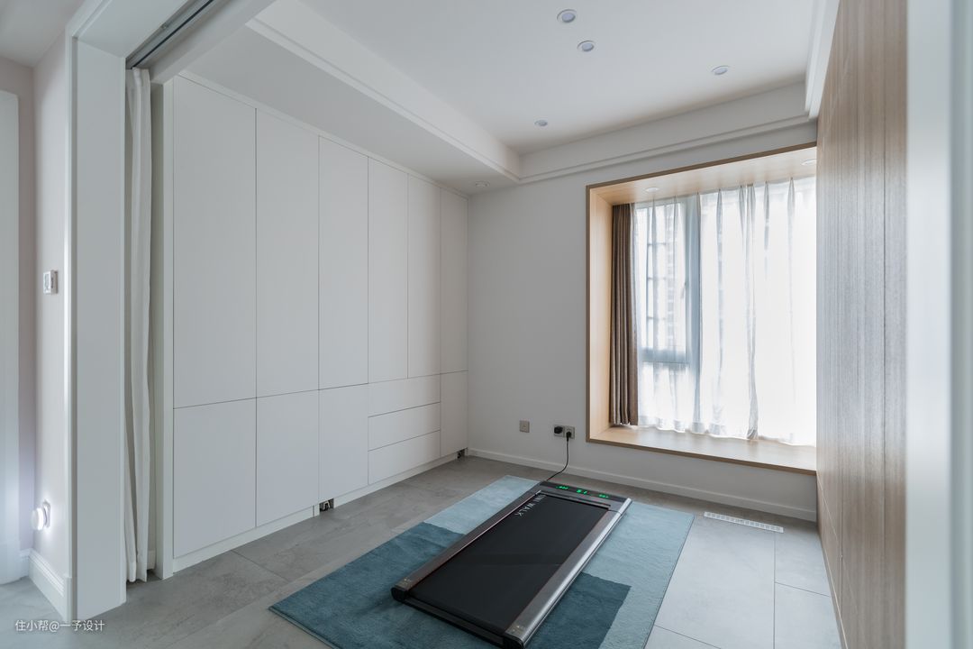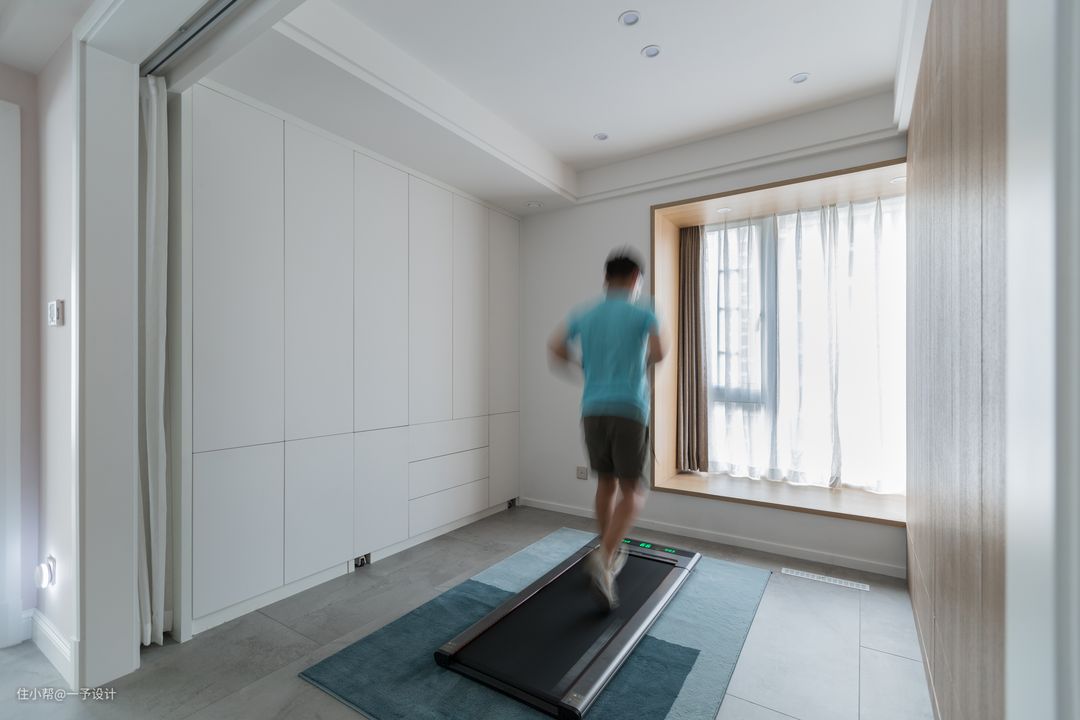 ▲书房设计成了多功能的空间。折叠床、活动书桌、跑步机分别对应着居住、学习、健身的功能,极大化利用有限空间。这个状态是现阶段我们家呈现的最多的状态。