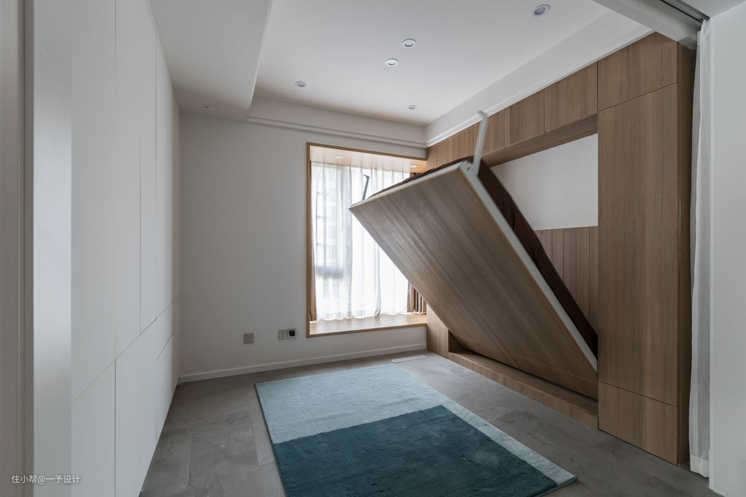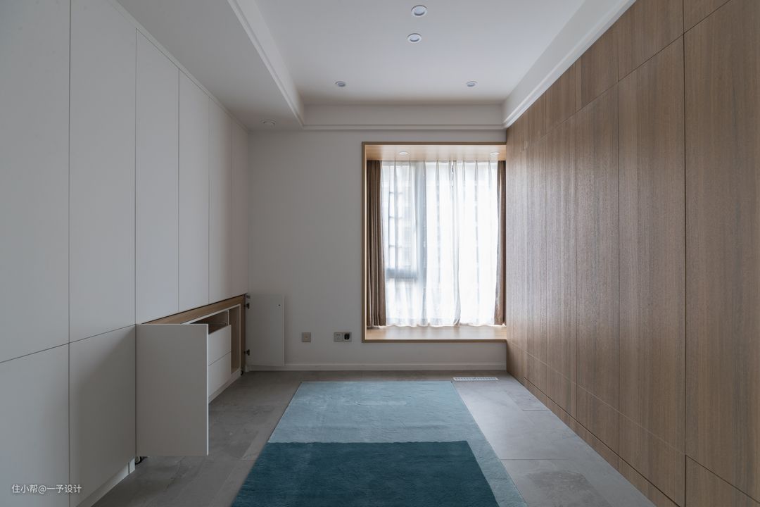 ▲原本房子主打的是四房的户型结构,朝北两个房间原本是很小的,可以说比较鸡肋,设计考虑的初期就把中间一个小房间一分为二,一半作为西厨,一半增加书房空间,增加储藏空间,这样书房的可变性就变得很强。
