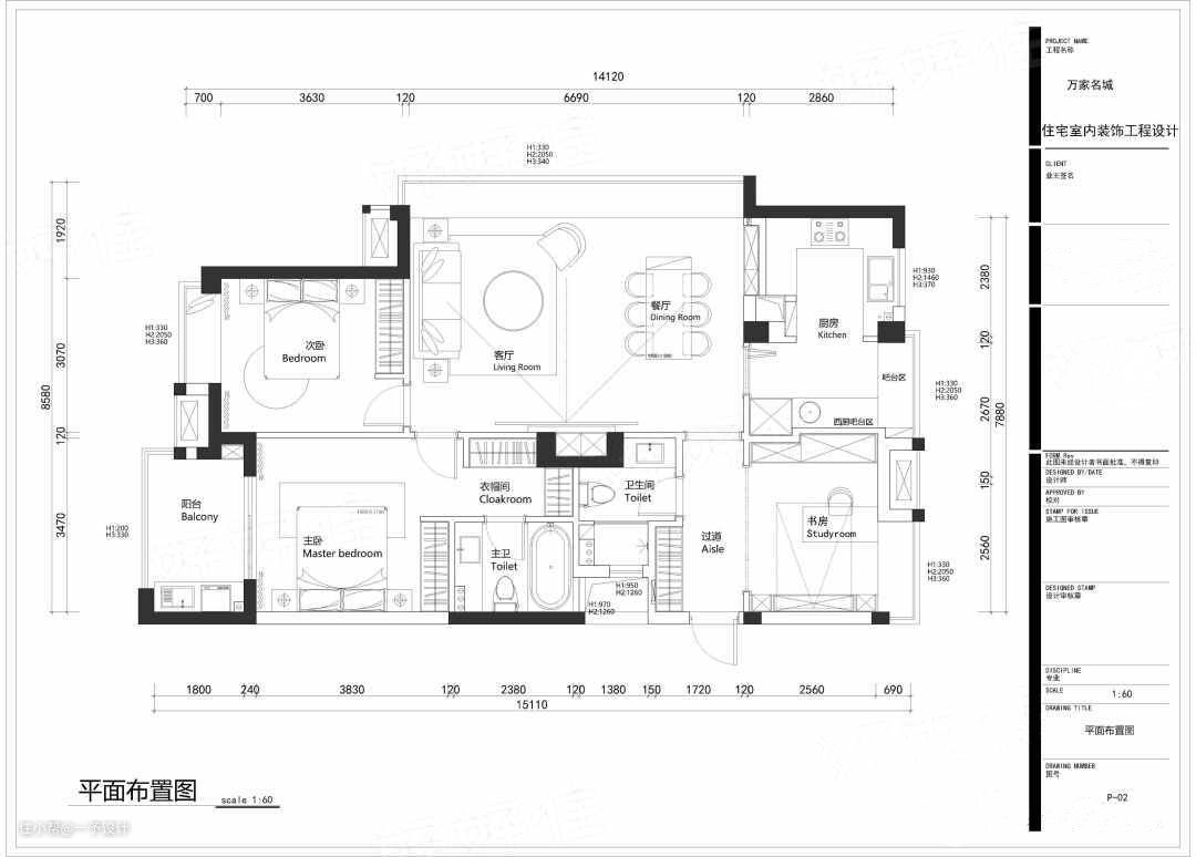 说在前面: 在杭州房市并不怎么疯狂的时候,一直在兜兜转转的看房,各个楼盘相间奔走,终于在2016年年初下定决心买下了当时周边配套设施并不怎么完善的房子,130方,户型还算不错。也算是完成了人生中的一件大事。 然后就是开始了对装修完后的各种想象,经过近1年的努力,看看 施工完后130方的房子 如何拥有5米面宽的客厅,大飘窗,中西厨,岛台,“伪”衣帽间,大露台,多功能室。一直没急着发帖,把入住后的感想一并和大家分享下,希望能给到大家一些意见。 小区丨万家名域 户型丨130方 3卧室+2厅+2卫 风格丨现代、轻奢 费用丨50万(全包) 设计施工丨一予设计 户型图