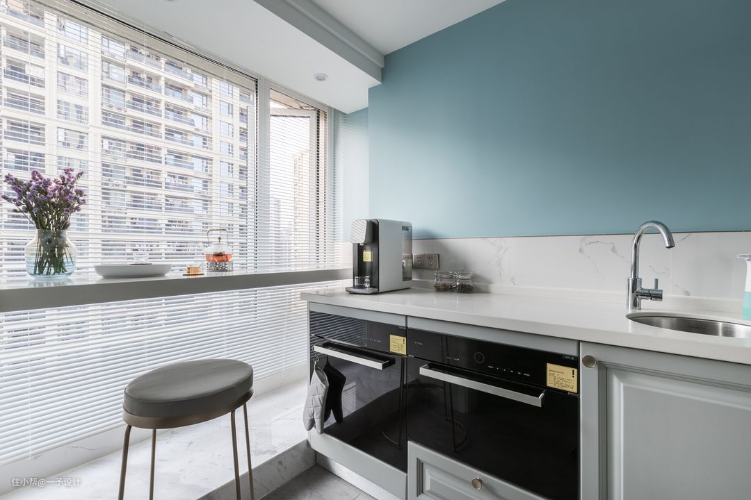 ▲厨房和多功能房间得放一起跟大家讲解我们的设计理念,其实这个区域从原始结构上是两个面积很小的房间,小到放个床都必须得靠着飘窗去放,从舒适度上体验是非常不好的。介于我们是三口之家住,又觉得厨房空间对于我们后期居住会是比较重要的一个区域,决定把半个房间改成我们西厨的空间。